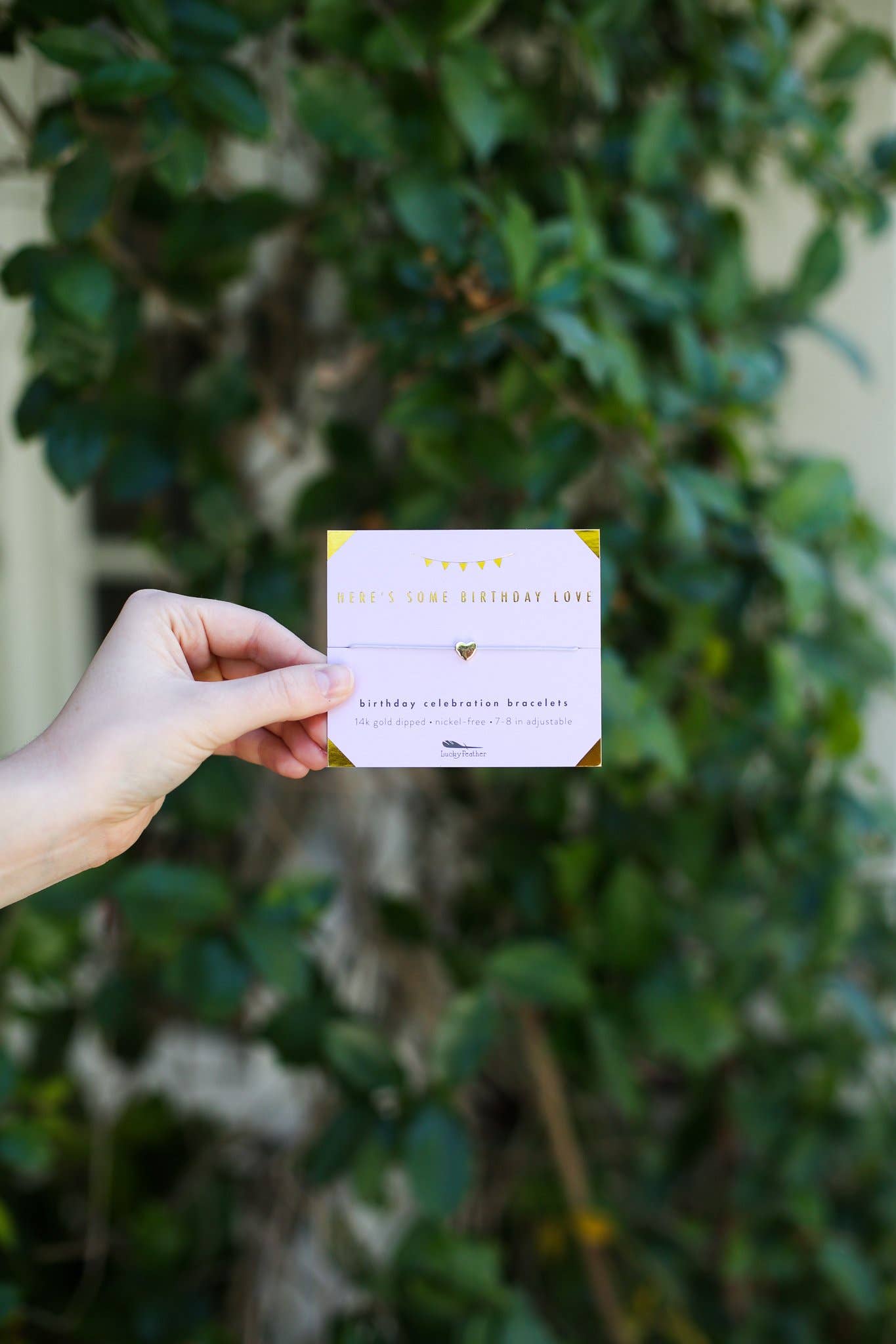 This dainty bracelet is the perfect way to celebrate anyone’s birthday! Packaged on a sweet card that reads, “Here’s Some Birthday Love”, this heart charm bracelet reminds everyone just how loved they are on their birthday!