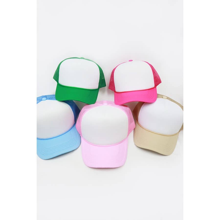 -Classic Foam Trucker Hat Summer Mesh Rope Cap Solid Two Toned Blank Hat for Mens Womens Adjustable Strap Light Weight.