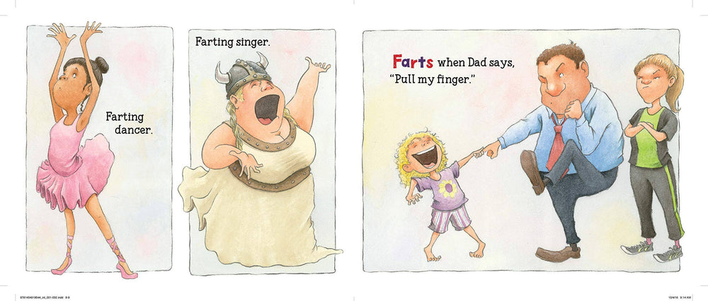 Grandmas fart. Teachers fart. Terrifying creatures fart. But . . . is there someone who DOESN'T fart? With sly humor, this fun picture book looks at a subject that's sure to make children laugh: farting. With silent farts, farts like horns, and rainbow farts from unicorns, Almost Everybody Farts comically captures the gassy scene. And only one person insists she's fart-free: MOM! But is she? Kids will insist on reading this rhyming story again and again."A playful, punchy paean to the pervasive poot." —Kirkus Reviews (Starred review) Hardcover book with printed laminated cover picture book; 10 x 8 inches; 32 pages.