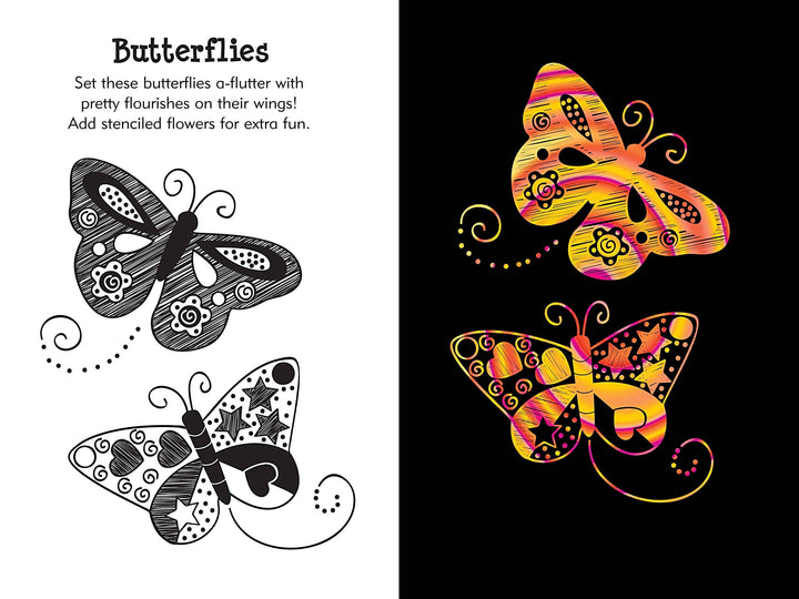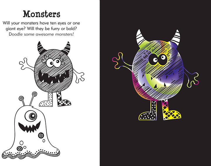 Let your creativity run wild as you doodle everything from outer space to animals to flowers to robots! This is a Trace-Along Scratch and Sketch! White outlines on black scratch-off pages create a fun way for younger children (5 and up) to trace the pictures, revealing patterns, swirls, and holographic colors. They can also use the sketch pages in the back to draw their own pictures. A wooden stylus for tracing is shrink-wrapped with the book. Includes 20 black-coated scratch-off pages, 20 illustrated pages with fun text, and 20 extra pages for independent drawing and sketching. Suggested ages: 5 and up. Sturdy wire-o hardcover binding. Art activity book measures 6-3/8'' wide x 8-1/2'' high. 64 pages. Non-toxic. Potential eye irritant. Avoid inhaling particles of scratch coating. Not for children under 5 years. Meets all applicable sa