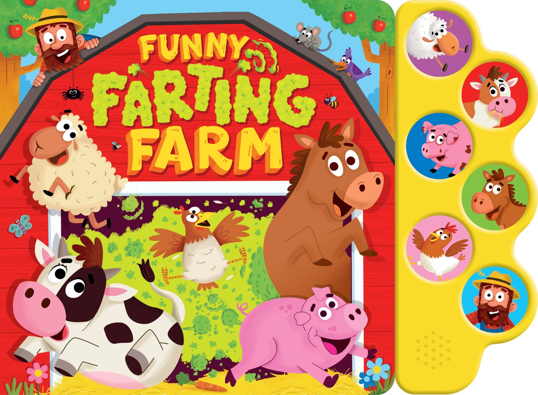 Take a trip to the funny farting farm, where the animals love to play, eat, and mostly, fart! Press the buttons to hear each animal’s fart sound, along with a funny song all about this special, and smelly, farm!