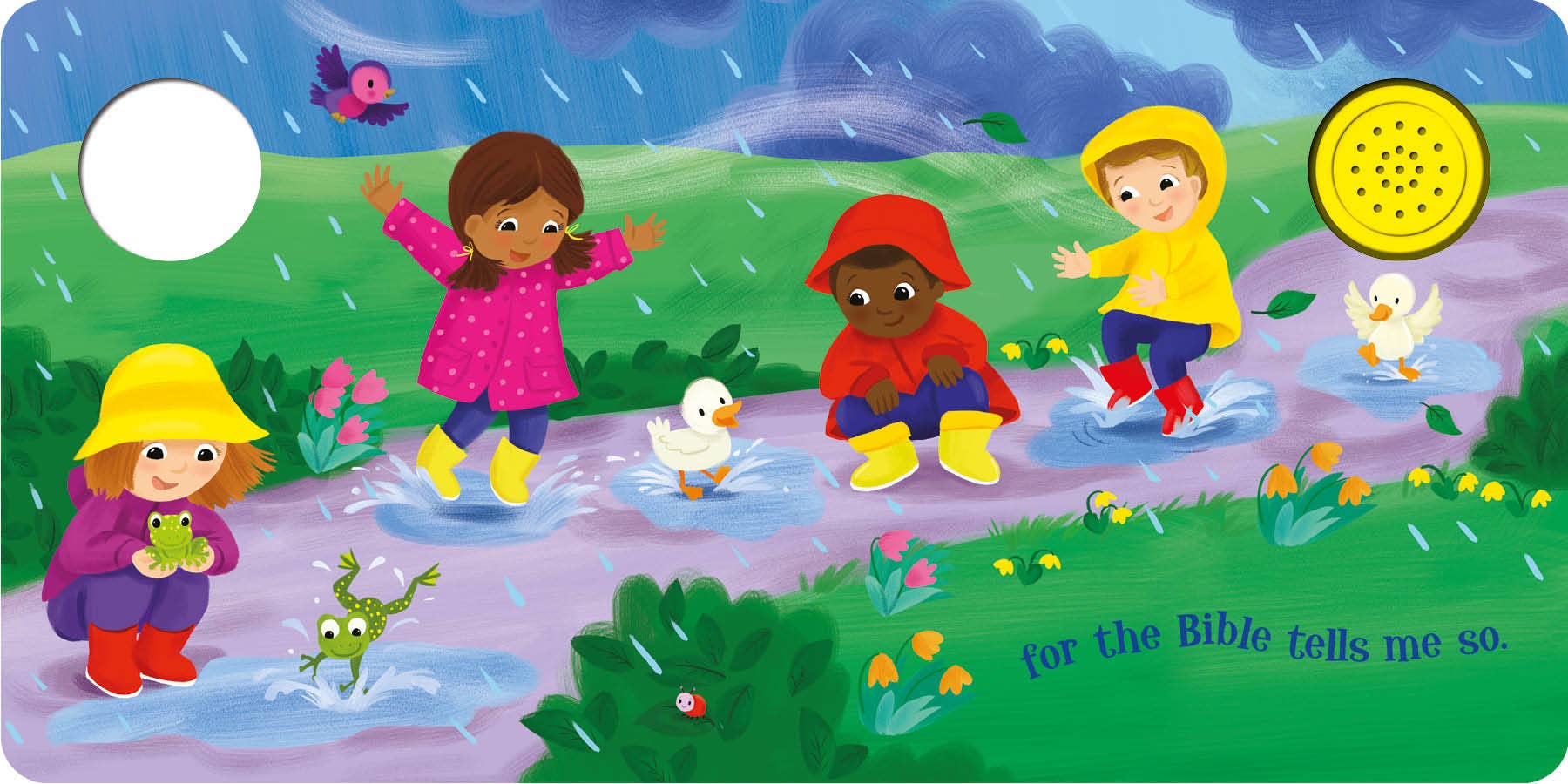 Introducing a delightful way to introduce your little one to the timeless song ""Jesus Loves Me"" with this enchanting, illustrated book. Sing along to the classic Bible tune as you turn each page, where printed lyrics bring the song to life. With a simple press of the button, hear the melody and joyful singing, making every reading session a fun, interactive experience. Perfect for engaging young children, this book features easy-to-read lyrics that are age-appropriate and just the right length to keep little ones captivated while learning about Jesus and God.
