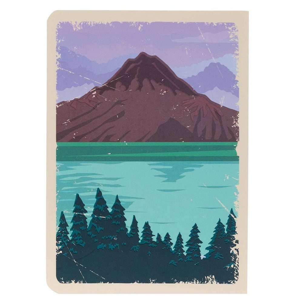 The softcover is decorated with a fun nature image that shows a blueish-green lake framed by pine trees in the foreground and a mountaintop in the background. The title are subtitles are displayed in a green frame with a white border and a pink banner.365 Days To Knowing God For Girls
