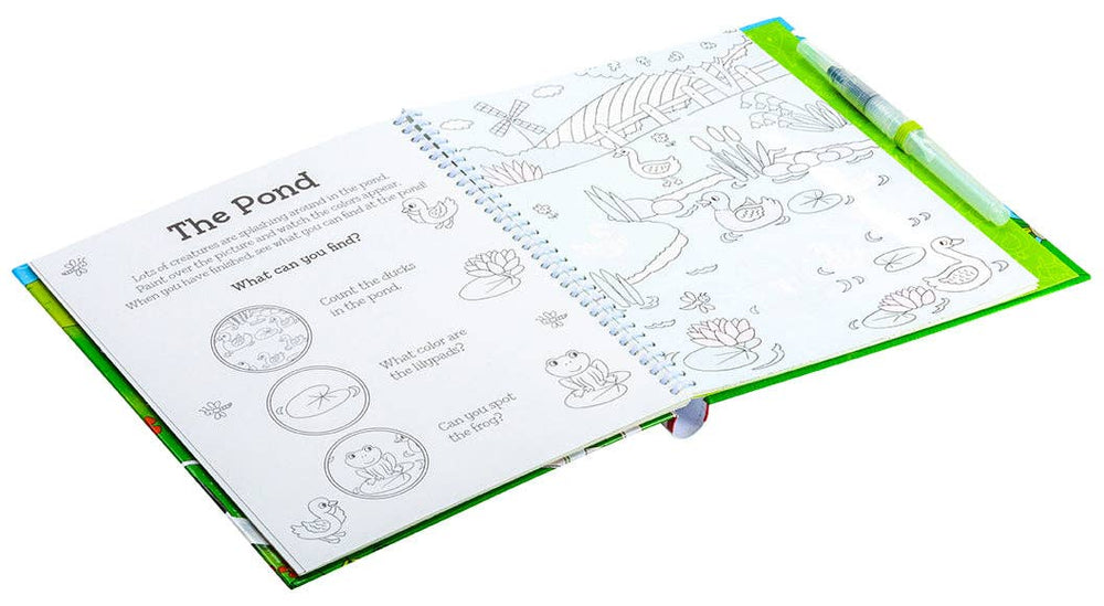 Like magic, these farm scenes come to colorful life when painted with the included water-filled brush! As the water dries, the color disappears and the pages can be painted again and again! Ten scenes of cows, horses, pigs, goats and more make for mess-free fun in the summer and year-round. Each page also includes search and find challenges that support literacy-building skills.