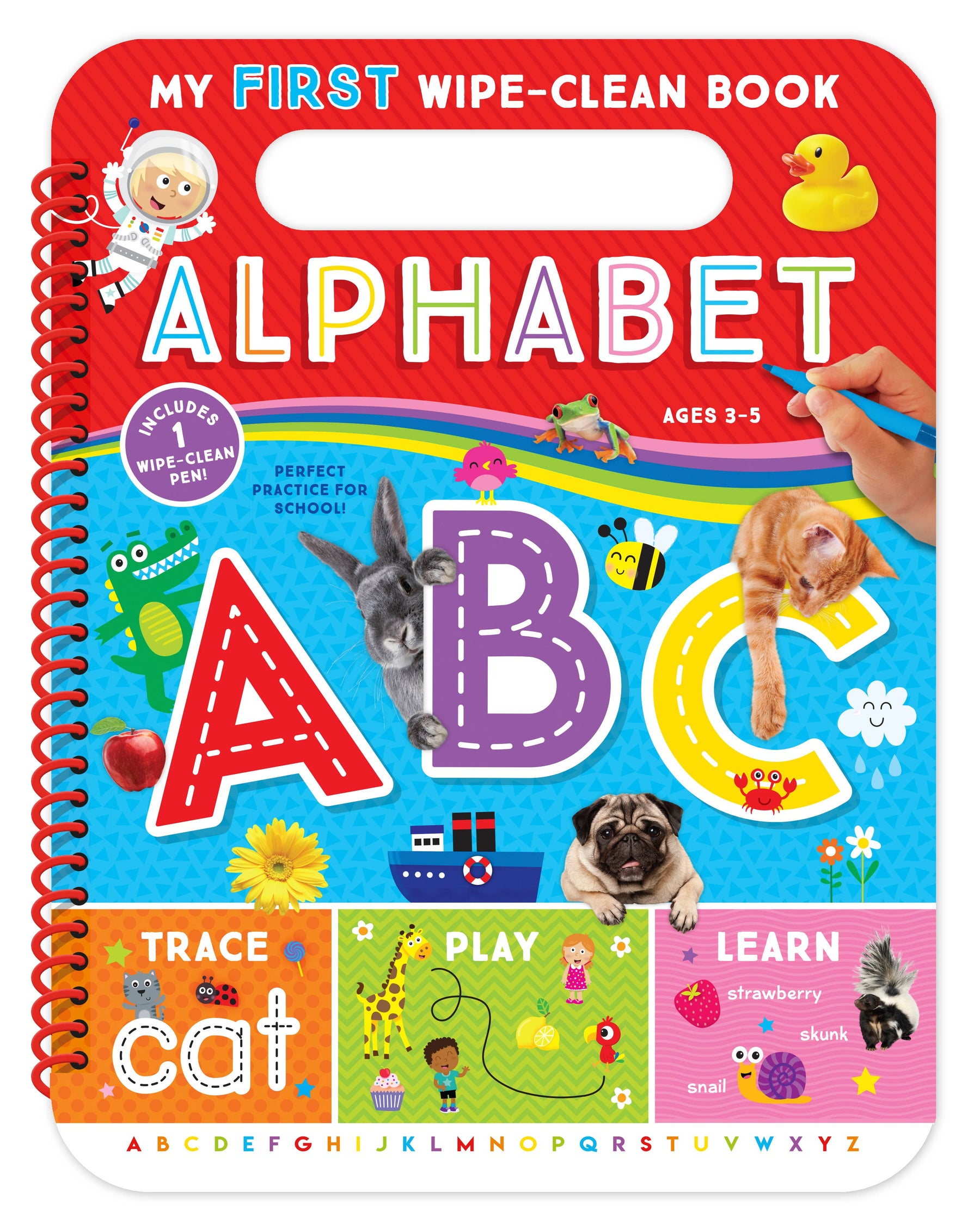 Practice your ABCs with MY FIRST WIPE-CLEAN! Using the included dry-erase pen, the activities on each page can be completed, wiped away, and repeated for hours of early learning. Not your typical educational wipe-clean; these colorful spiral-bound books take a fresh approach to learning to write! Including fun games and creative prompts, children will be wiping and writing again and again.