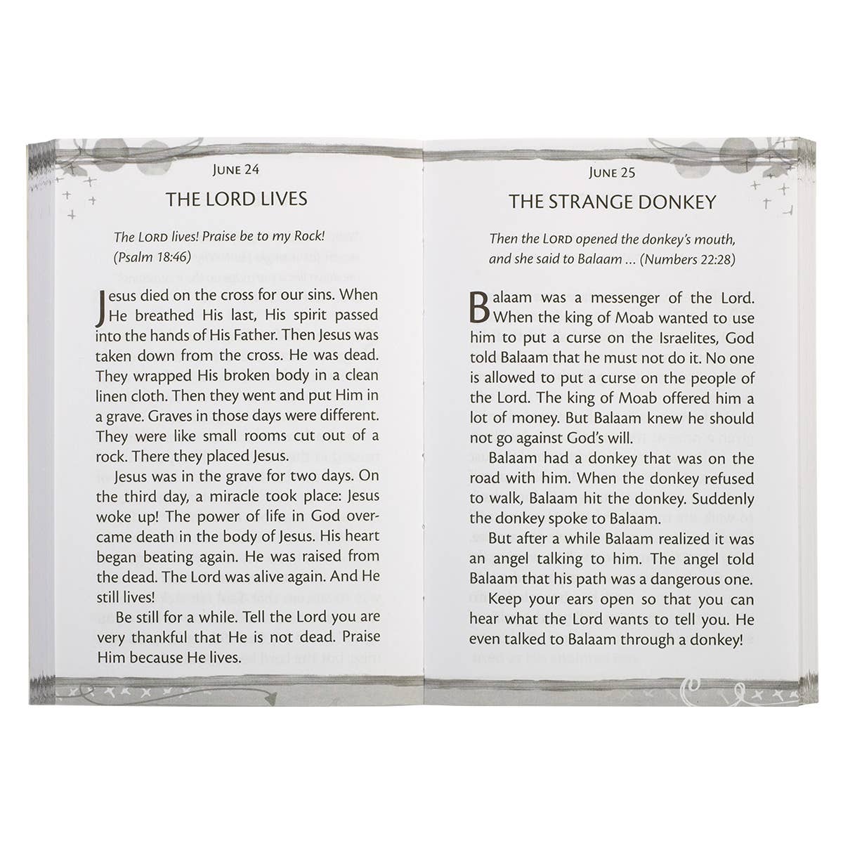 One-Minute Devotions For Kids will guide young children to make wise decisions when they face challenges at school, home, or on the sports field. God's Word gives the best examples of what to do and say when facing challenging situations and teaches children how to follow in the footsteps of Jesus. The cover of the paperback devotional is decorated with bright, lively pops of color and confetti string lines. The title is presented in a shiny and fun handwritten teal foiled script. One-Minute Devotions for Kids Each daily reading includes a date that follows a calendar year, title, and Scripture verse followed by a devotional thought. The economical book is printed in standard gray-tone ink for affordability. A presentation page in the front can be personalized with a name and a message. Themes include the death and resurrection of Christ, obedience, forgiveness, bitterness, heal