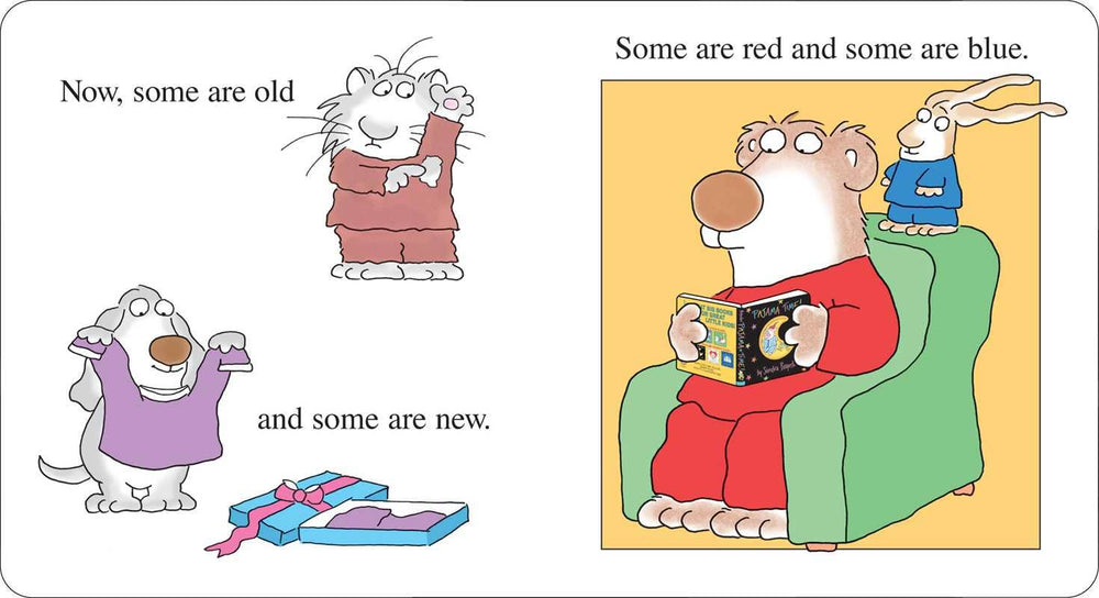 A jump-roping chicken and a pig on a swing. A moose in striped pajamas and an elephant in a fuzzy one-piece with feet. And in sing-along nuttiness reminiscent of Barnyard Dance!, it's time for the animals to put on their jammies and get ready for bed. It's BIG fun from Sandra Boynton in the big, big size of this favorite board book.