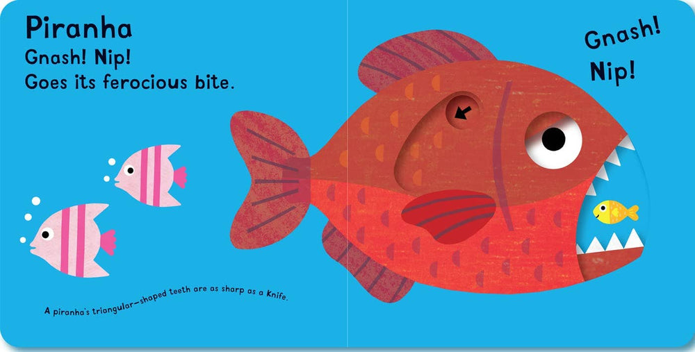Gnash, flick, slither, and slide! These are the animals with nothing to hide! Children love to learn about animals and this simple novelty book explores the jungle in a really fun way. Slide the sturdy tabs on every spread to make the animals chomp and snap as they chase their lunch. Snap! Snap! I'm a Crocodile contains bright colors, actions to copy, and simple facts about animals, plus plenty of onomatopoeia. Great for sharing! Children's Board Book; 7 x 7 inches; 8 pages.