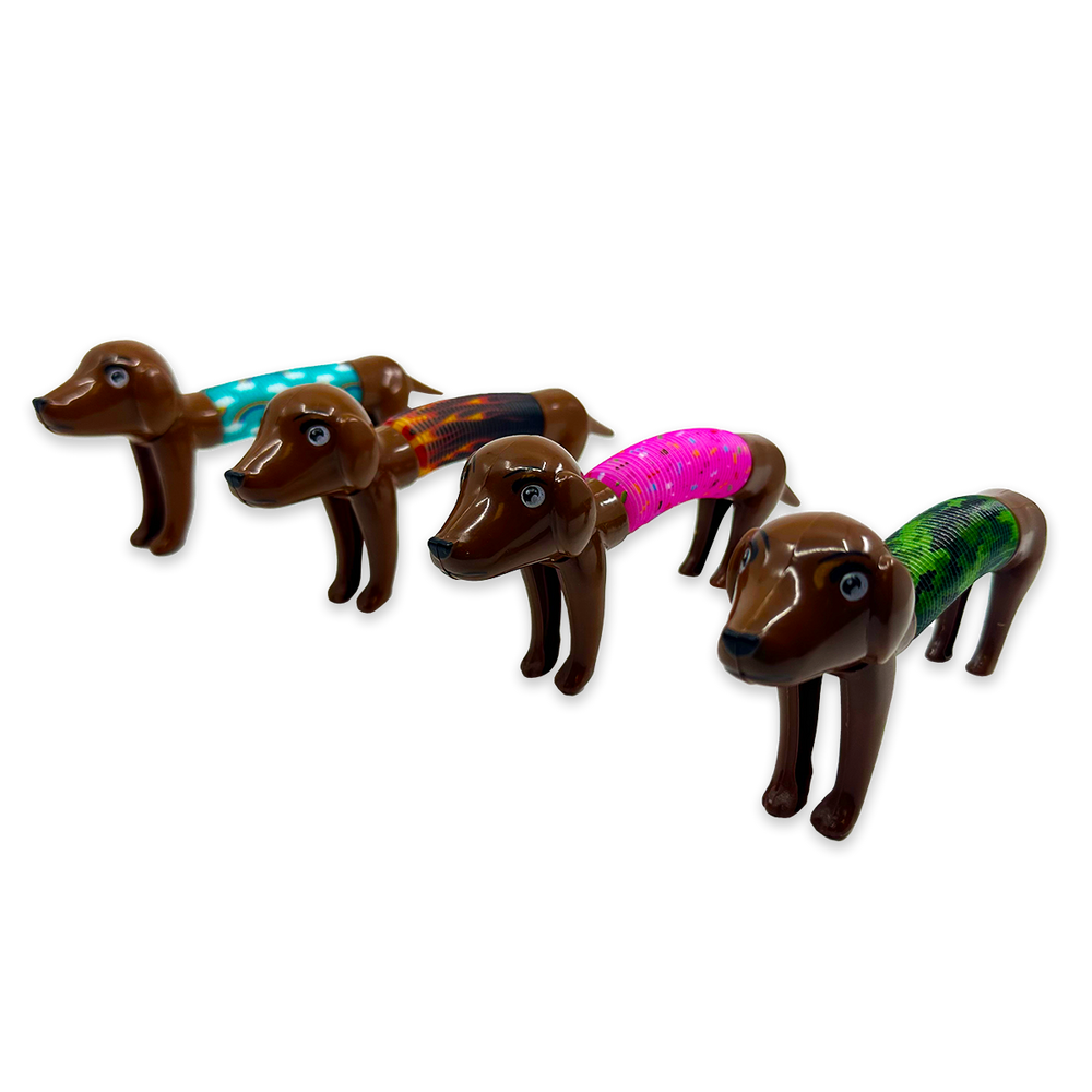 These cute dogs are fun to fidget, have satisfying clicks, and so much play value in one toy. Stretch, bend, shape and create. The regular length of these dogs are 6" but can stretch out to 11.5"!