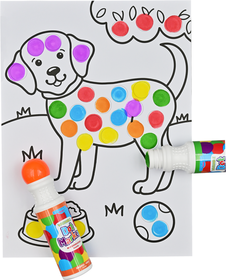 • Marker set comes in a sturdy card-stock storage case with carrying handle. Perfect for dotting on the go!