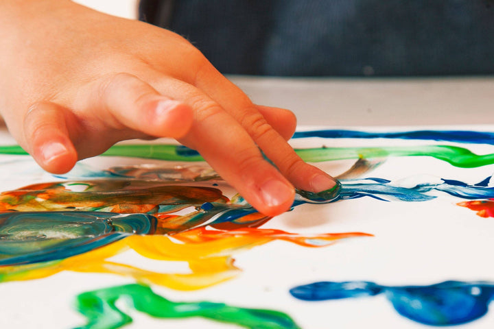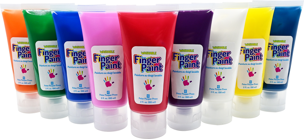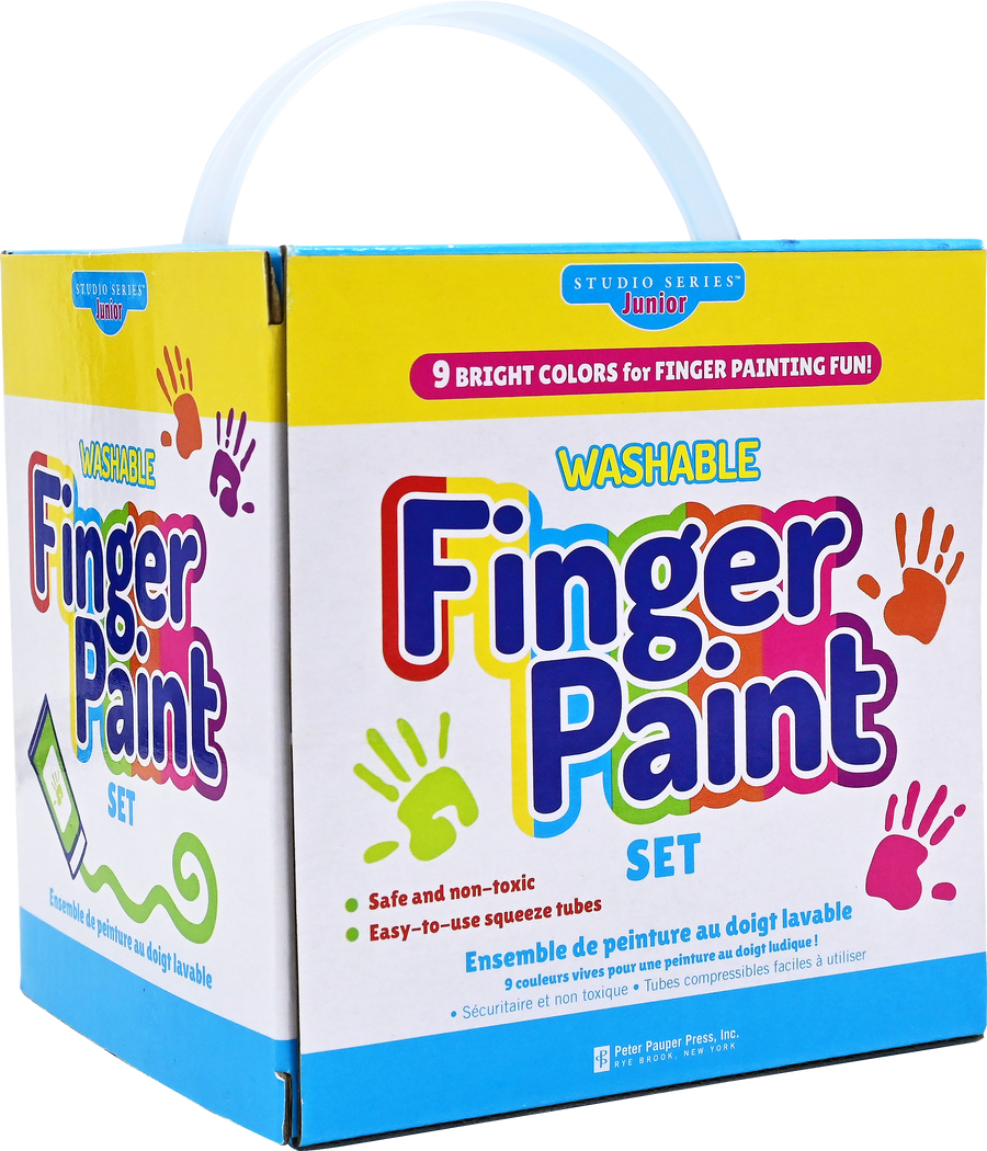 Finger painting encourages creativity, helps develop fine motor skills, provides a sensory experience, and is just plain fun, too! Little ones will enjoy finger painting with this deluxe boxed Washable Finger Paint Set! Set contains 9 tubes of premium finger paint in bright, kid-favorite colors: Red, Orange, Yellow, Green, Purple, Pink, White, Dark Blue, and Teal. Finger paints provide a fun way for children to learn to identify colors and experiment with mixing them. Paints come in flip-top 2-ounce squeeze tubes that are easy for little hands to use. Paint is safe, non-toxic, and washable. Sturdy storage box keeps paint tubes safe and organized and comes with a handle for easy portability. Take them on the go! Boxed set measures 4-7/8'' long x 4-1/2'' wide x 4-1/4'' high.