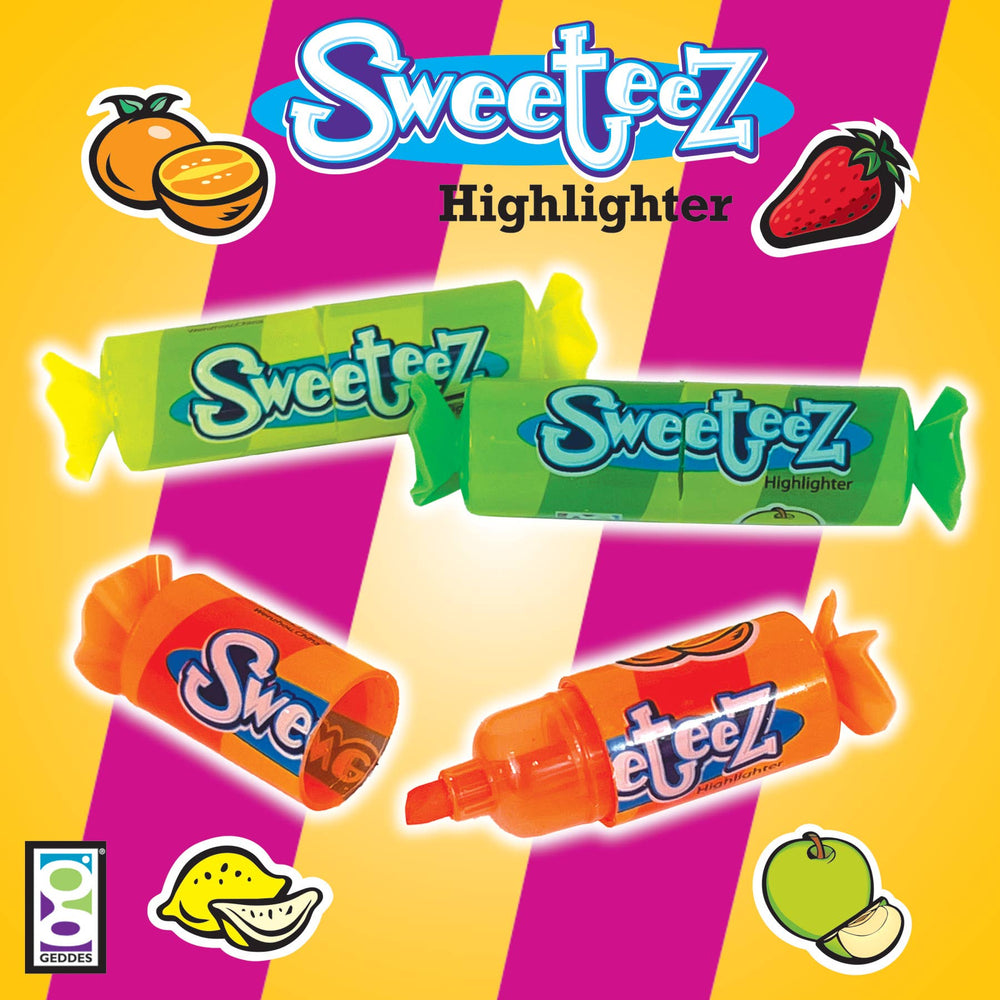 Cute, Candy-Shaped Highlighters In Four Great Scents Assortment: Yellow, Orange, Pink, Green Assortment: Lemon, Orange, Strawberry, Green Apple Highlighter Ink Matches Barrel Color Chisel-Tip Highlighter 2 5/8" Long Warning - Choking Hazard - Small Parts.