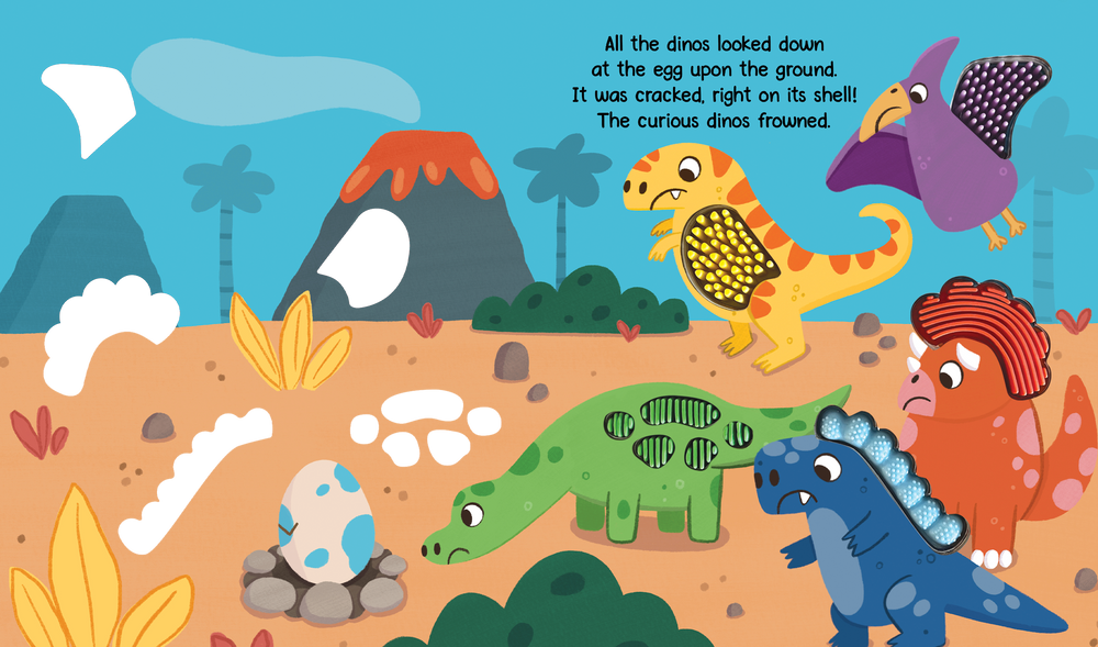 Oh no! The dinosaurs have discovered that a little egg has been cracked! What dinosaur would do such a thing? The dinos leave one by one to search for the one who cracked the egg...but where is this dinosaur hiding? Find out when you devour this egg-cellent, prehistoric mystery!