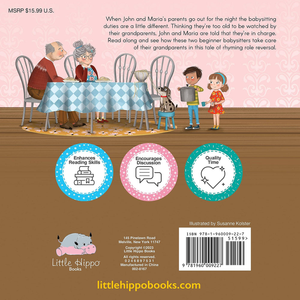 When John and Maria’s parents go out for the night the babysitting duties are a little different. Thinking they’re too old to be watched by their grandparents, John and Maria are told that they’re in charge. Read along and see how these two beginner babysitters take care of their grandparents in this tale of rhyming role reversal.