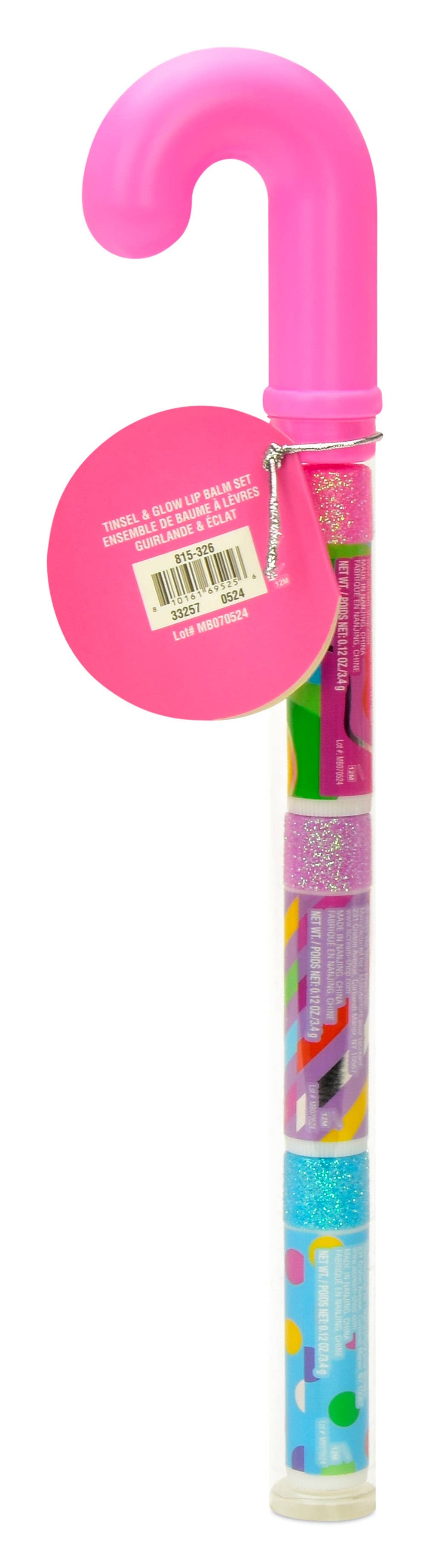 Set of 3 lip balms in cute candy cane style container. Vanilla, Mint and Cherry Scented lip balms.