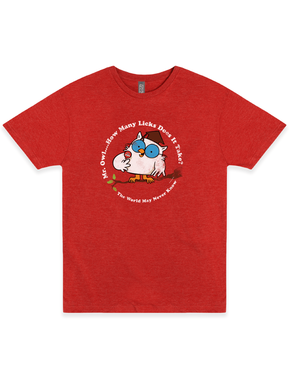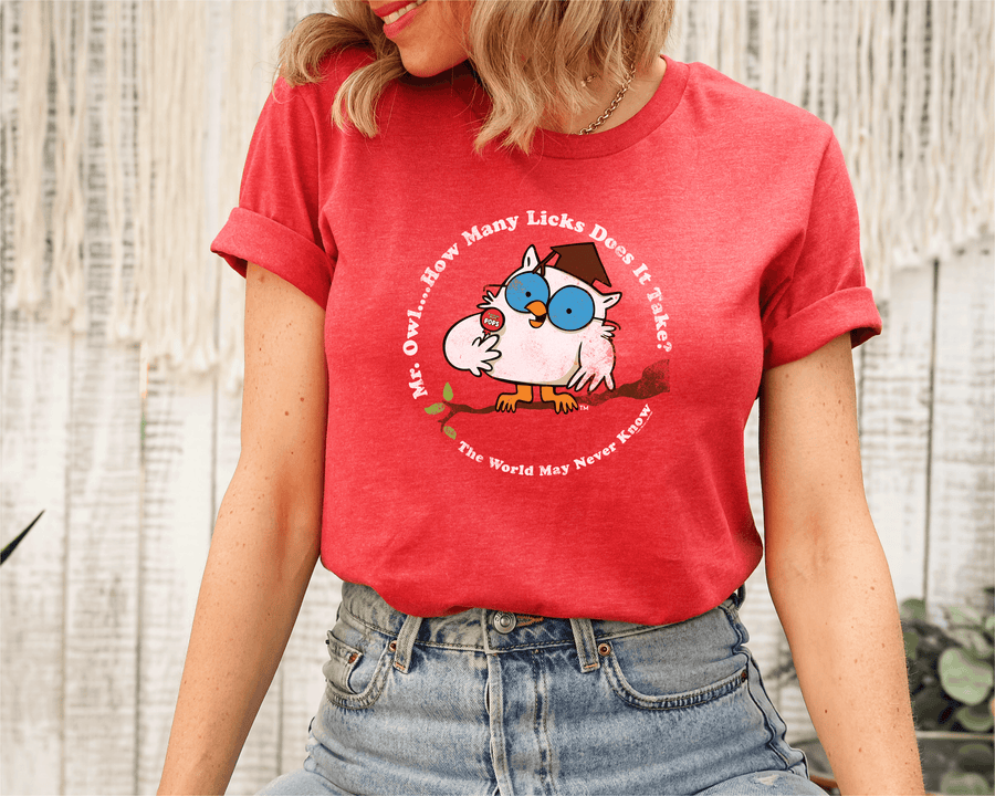 Classic Candy, Retro Style: Officially licensed by Tootsie®, this graphic tee lets you rep your love for the legendary Mr. Owl and the timeless question: "How many licks does it take?" in a fun and unique way.