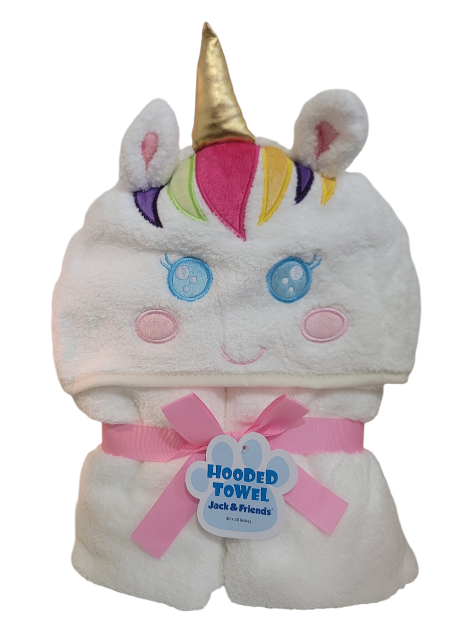 One & Only Creations, Inc. AKA Jack & Friends. A hooded kids bath towel made for your baby boys and baby girls. At a roomy 30"x 50", our towel is large enough to make a cozy towel swaddle for babies & toddlers or to fully wrap around a child. Soft Fluffy Towel Wrap Warm Swim Cover Up 30” x 50" Pool Beach Blanket for 3-10 Yrs Towel Open size: 30” x 50" Machine wash Tumble dry Imported