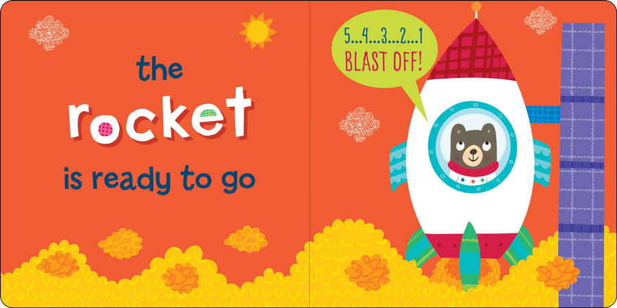 The rocket is ready to go! 5, 4, 3, 2, 1 . . . blast off! Explore the solar system with friendly animal astronauts! Engaging, entertaining board book will introduce your baby or toddler to important first concepts for every growing child. Image recognition. Word recognition. Speaking skills. Motor skills. Get your little one started on the right track! Bright and colorful! Adorable illustrations and fun text to read and sound out! Sturdy board book has soft, padded covers. Easy for little hands to grip and hold! Ages 0 +. Board book measures 6-1/2'' square. 20 pages.