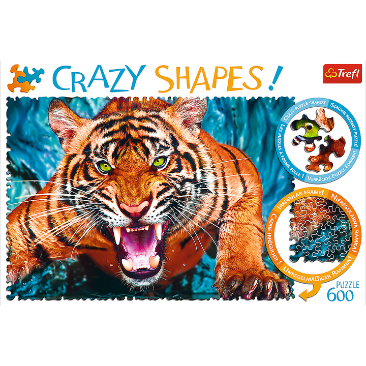 Crazy Shapes 600 piece jigsaw puzzles - eye to eye with a tiger!