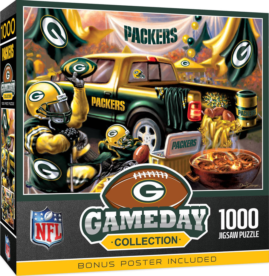 This MasterPieces NFL 1000pc 19.25" x 26.75" Green Bay Packers Puzzle is perfect for any Packers fanatic. Now fans can play all year long! To reduce its impact on our environment, the chipboard used in this puzzle is made of recycled material.