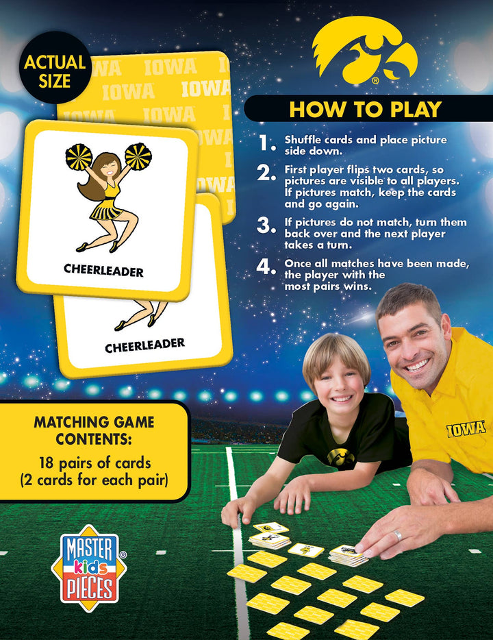 Looking for a fun way to spend some time with the family? Look no further than the NCAA Iowa Hawkeyes Matching Game. This exciting game puts a sports spin on the classic matching game, and is perfect for children, adults, and families of all ages. With 18 unique pairs of symbols, it's sure to keep you entertained for hours on end. Plus, the officially licensed NCAA picture cards are made with high-quality stock for durability and lasting enjoyment. So grab a partner and get ready to test your memory and sports knowledge with the NCAA Iowa Hawkeyes Matching Game!