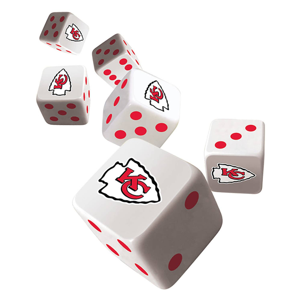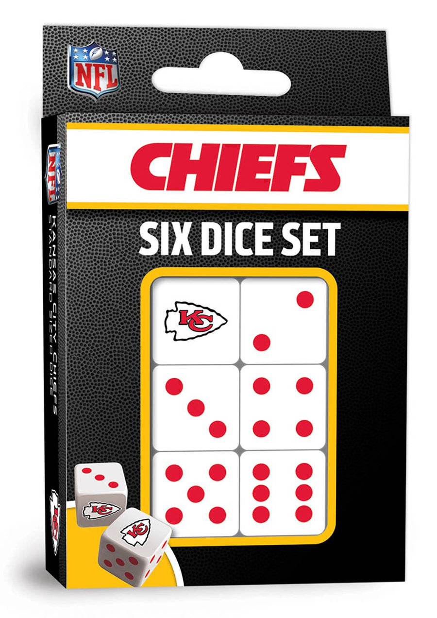 Ready to roll with your favorite NFL team? Then do it with style and officially licensed dice! This 6-piece D6 gaming dice set from MasterPieces is perfect for Craps, Grand Hazard, Klondike, and any other dice game you can think of. Each die has the Kansas City Chiefs logo and colors prominently displayed, so you can show your team spirit while you roll. The dice are also standard size (16mm) so they're easy to grip and use. Suitable for ages 6 and up, this is a great gift for any Raiders fan - or for anyone who loves to roll the dice!