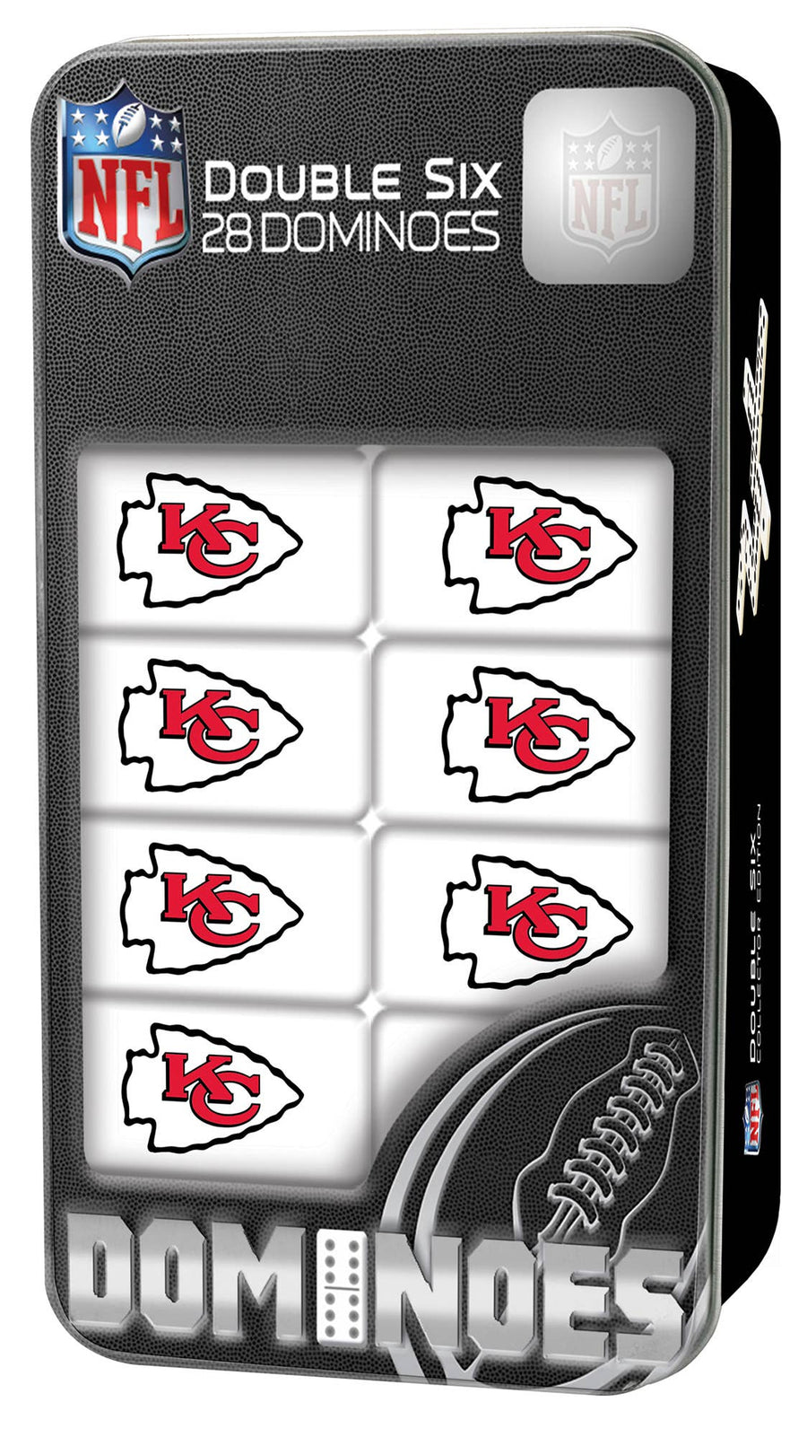 Officially licensed, MasterPieces NFL Kansas City Chiefs dominoes are perfect for any sports fan! This Double-Sixes Kansas City Chiefs Dominoes Set comes in a collectible tin box and includes 28 resin dominoes with a team logo printed on the back of each one. Dominoes Instructions are also included. This Sports Dominoes Set is perfect for all sports fans, ages 6 and up! Bring a little bit of pride home with you by purchasing this unique Dominoes Set!