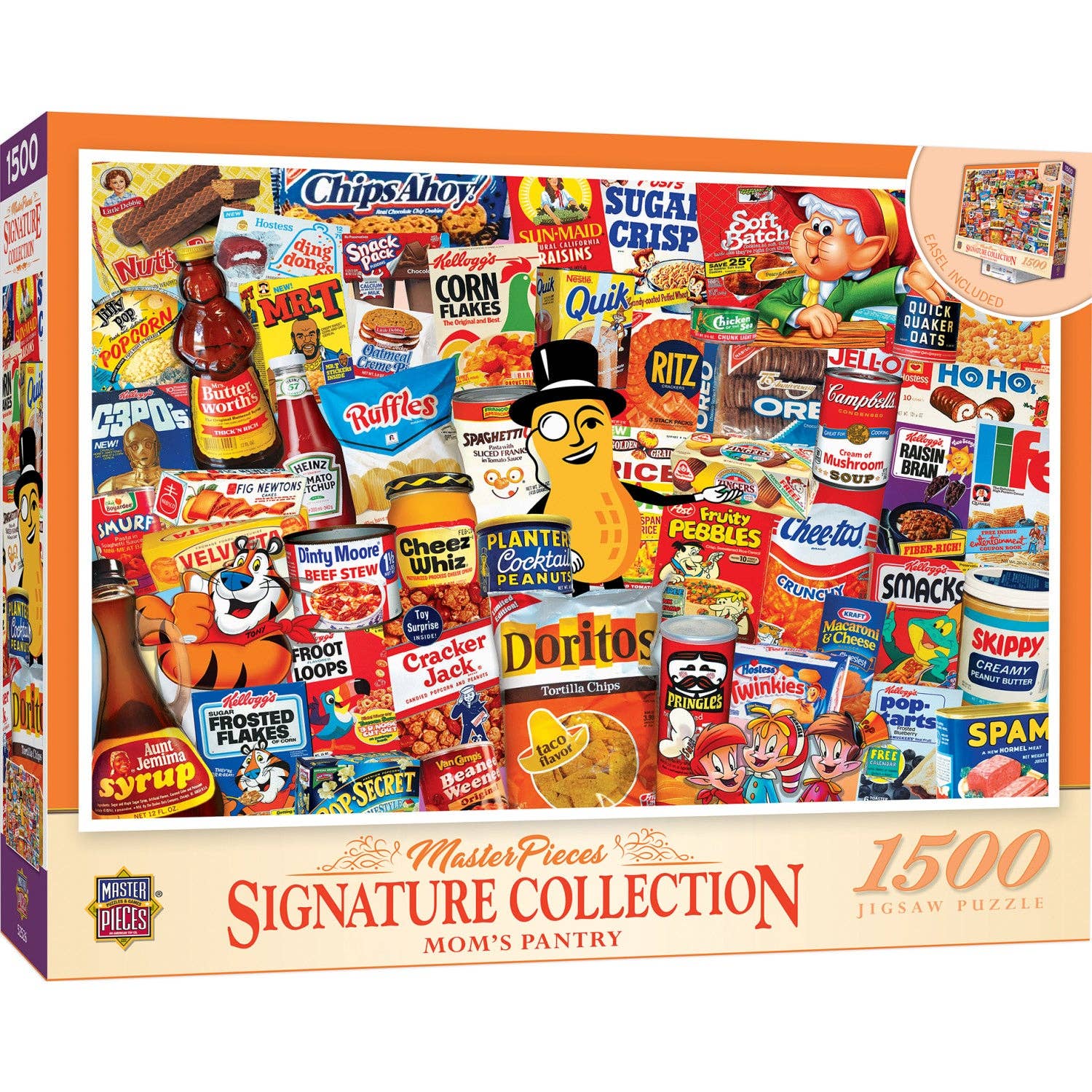 This MasterPieces 34" x 23.5" 1500pc Flashbacks Puzzle has a nostalgic feeling of different thinks that take you back to your childhood days. These images include classic retro board games, tin toys, gas station signs, and favorite foods from mom's pantry. These timeless puzzles are a throw-back to yester-year. The chipboard used in these puzzles is made of recycled material.