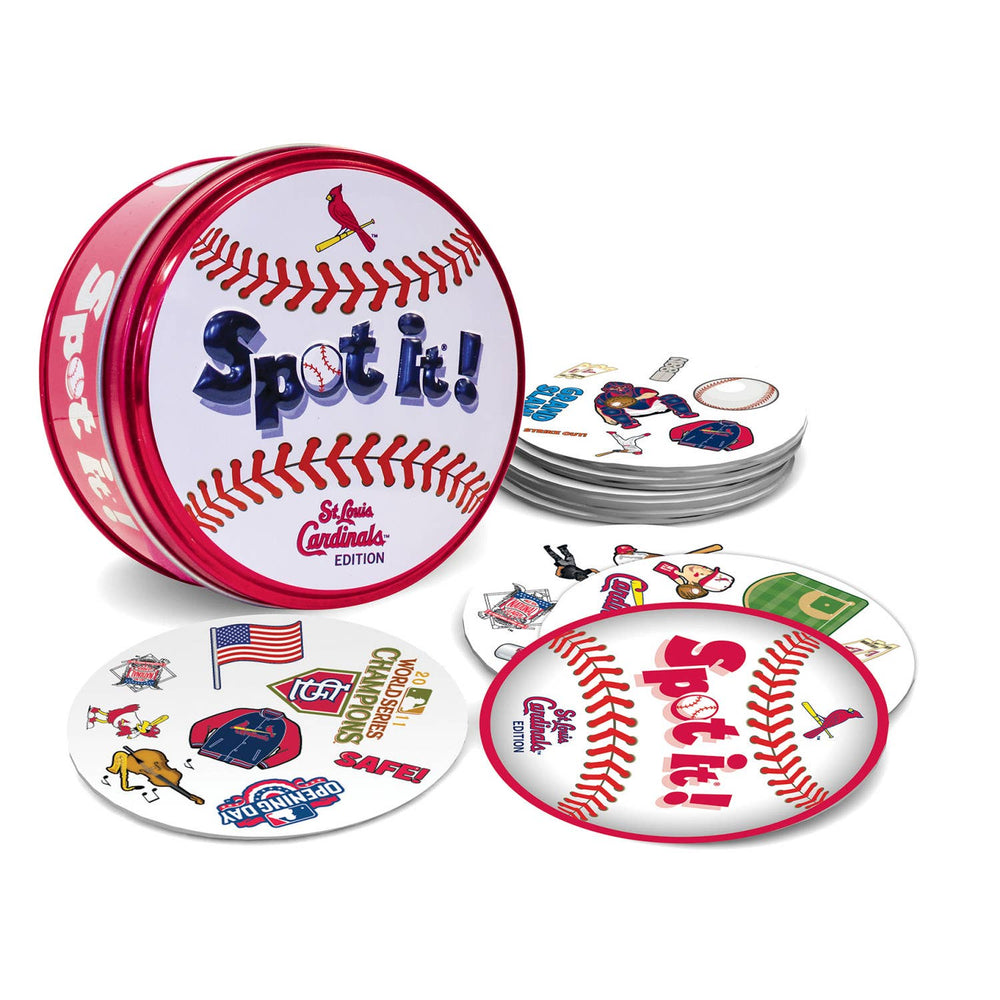 Spot It! Officially licensed MLB St. Louis Cardinals Edition puts an exciting spin on the family favorite. Just like the other Spot It! games, this St. Louis Cardinals Edition comes with a variety of unique symbols for you to identify and match from card to card. Many of the symbols represent the St. Louis Cardinals and the league. Play it once or play all night, with 55 unique cards and five different mini-games, you'll catch yourself going into extra innings with Spot It! St. Louis Cardinals Edition. Games take approximately 5 to 10 min to complete and is perfect for children and adults ages 7 and up.