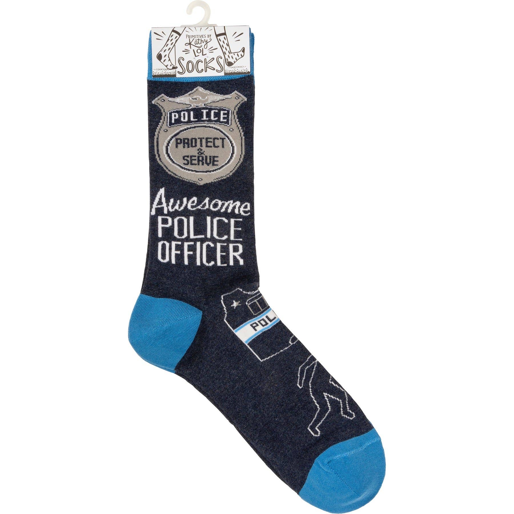 These colorful socks from our LOL Made You Smile Collection feature woven designs with coordinating "Awesome Police Officer" sentiment. Cotton, nylon, spandex. These awesome police officer socks are one size fits most.