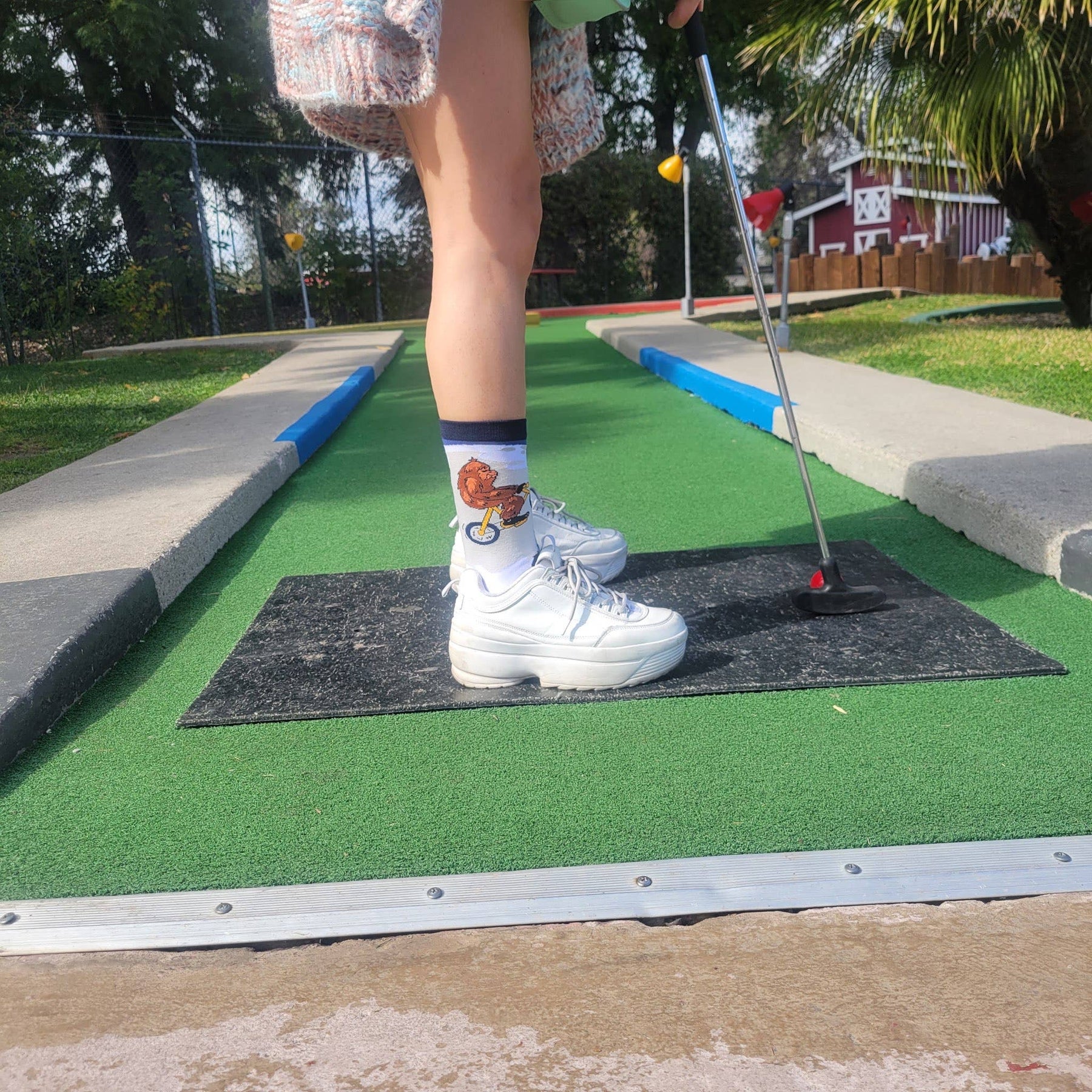 Maybe Big Foot is an alien? ET style Sasquatch cruising a bicycle across the moon socks. Amazing!