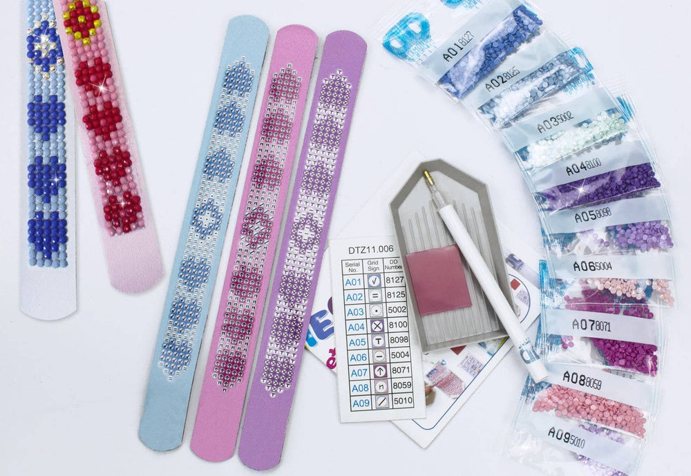 Share the sparkle of affection with the Love Diamond Painting Bracelet Kit from Diamond Dotz. Features pastel hearts and romantic motifs in pinks, purples and blues. This sweet craft is a heartfelt way to introduce to beginners. It's the perfect gift for kids as party favors or a Valentine's Day surprise! Contains 804 dotz.