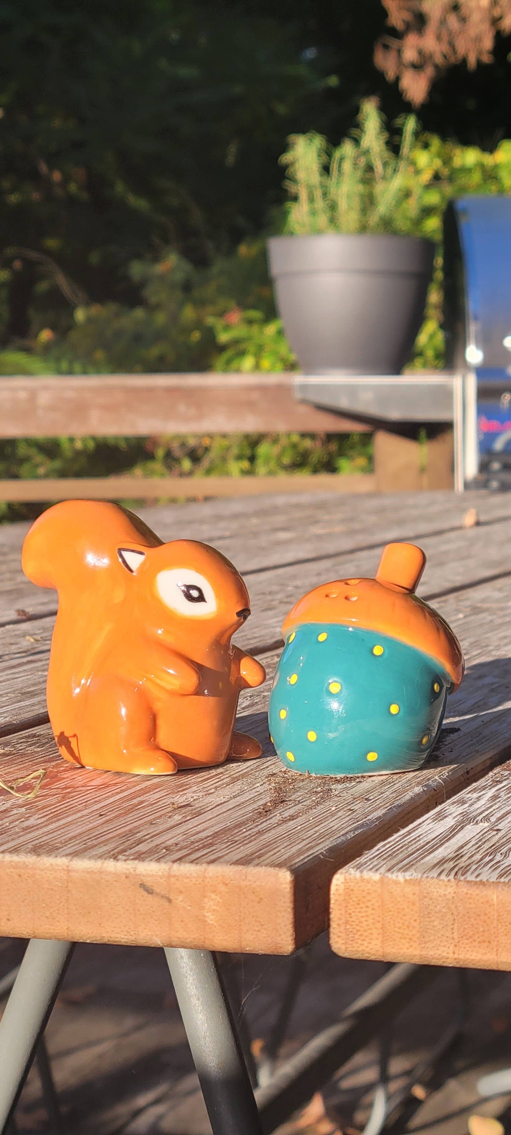 Introducing Streamline's New "On the Homestead" Collection with this adorable squirrel & acorn salt & pepper set! A beautiful color combination! A novelty gift idea!