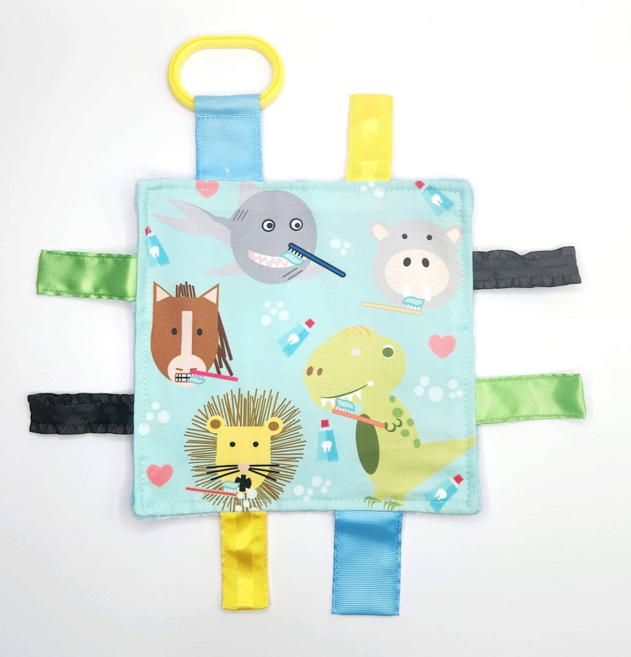 Baby can learn about how important it is to brush their teeth by seeing their gentle giant friends taking care of their own toofers. This sensory tag toy stimulates the five senses, including the sense of taste which can help with budding gums. The tooth fairy will adore this cute crinkle sensory toy as a keepsake for growing kids!