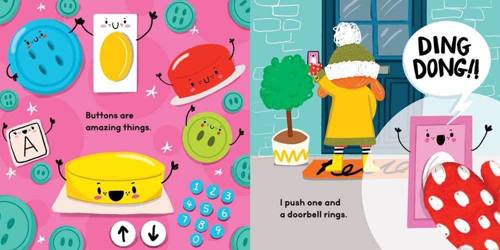 In this adorable, brightly colored board book, a little girl discovers the magic of buttons. From buttons at home to buttons at school, kids will see buttons in new and fun-loving ways as they learn about the world. And at the end, children will be delighted to find one very special button that all children have and love—their belly buttons!
