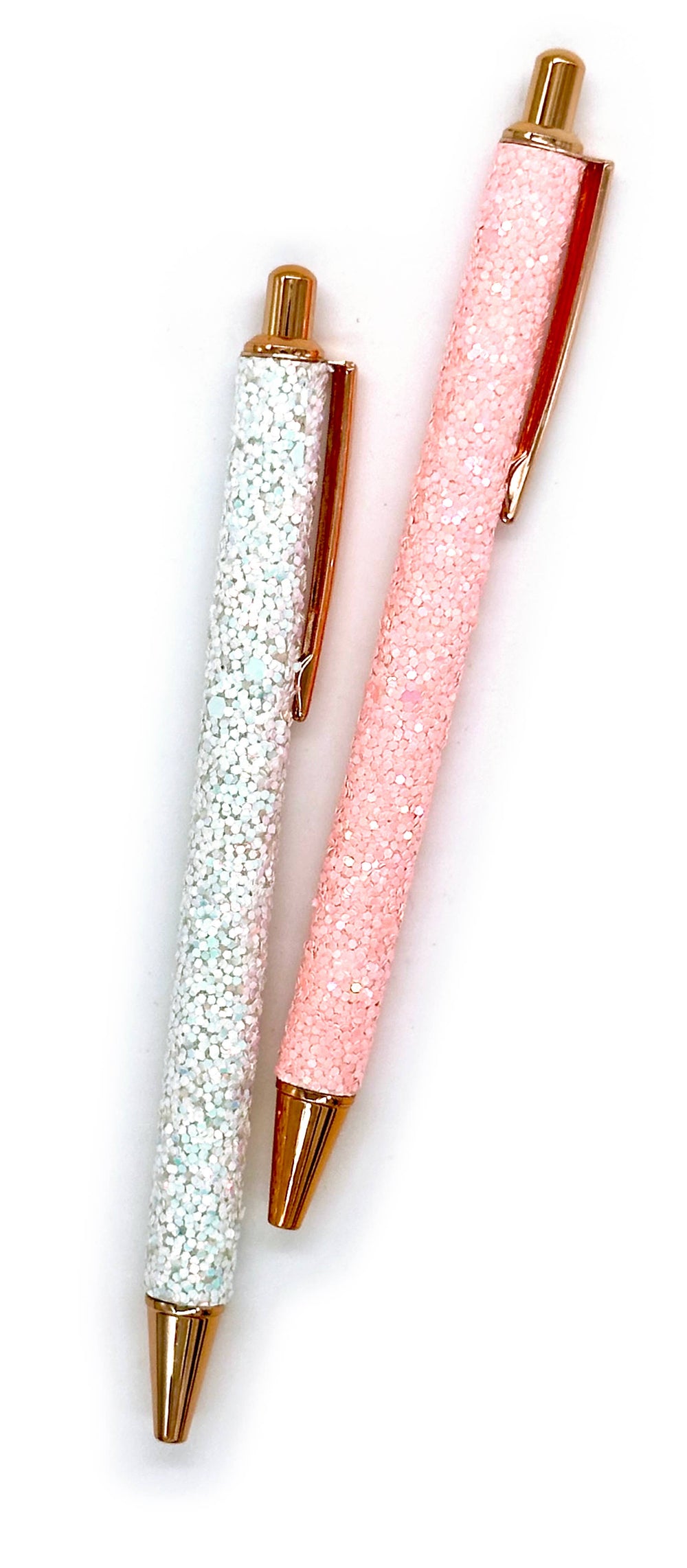 CHUNKY GLITTER PEN Get the party started with these chunky glitter wrapped pens 6 of each color: Mardi Gras, White Opal, Pink, Blue Black Ink | Refillable
