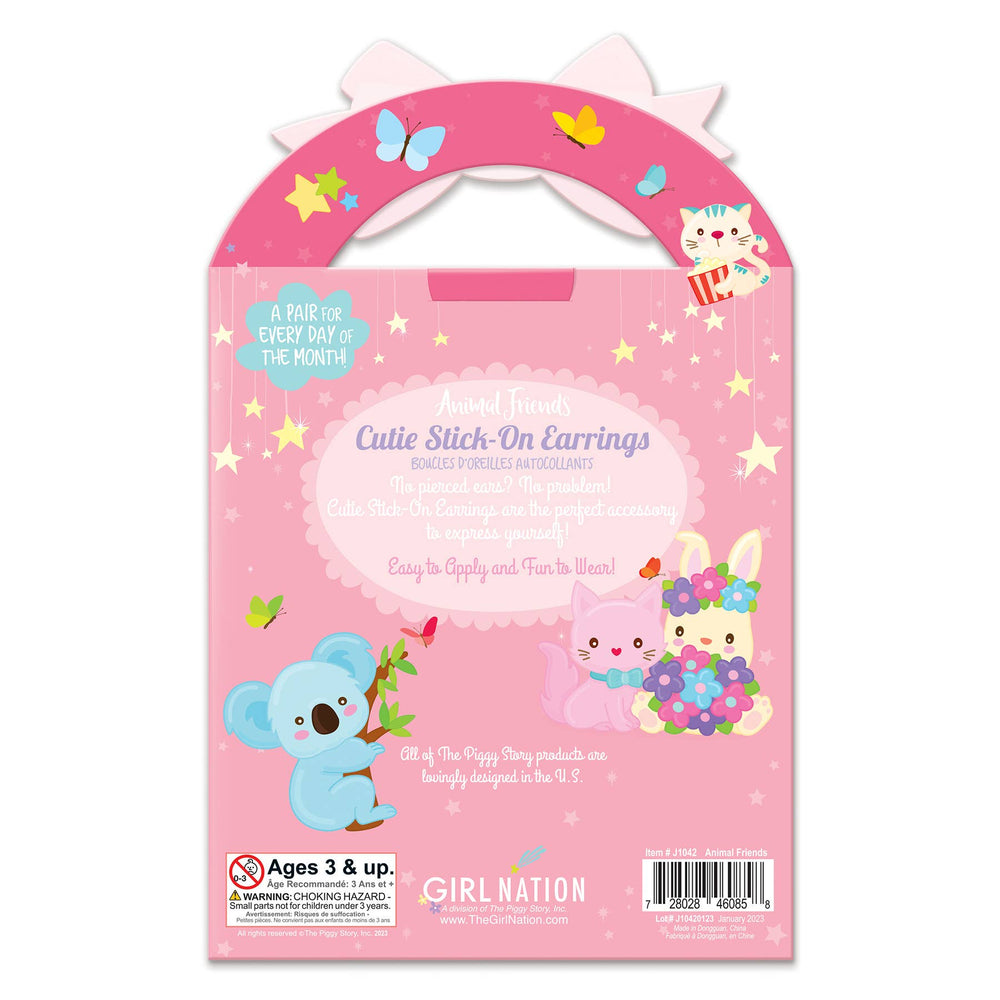 Cutie Stick-On Earrings are the perfect accessory to express yourself! Easy to apply and fun to wear. Each set comes with 32 animal themed pairs. Pigs, Sloths, Ponies, Llamas and more included in this fun, giftable set.