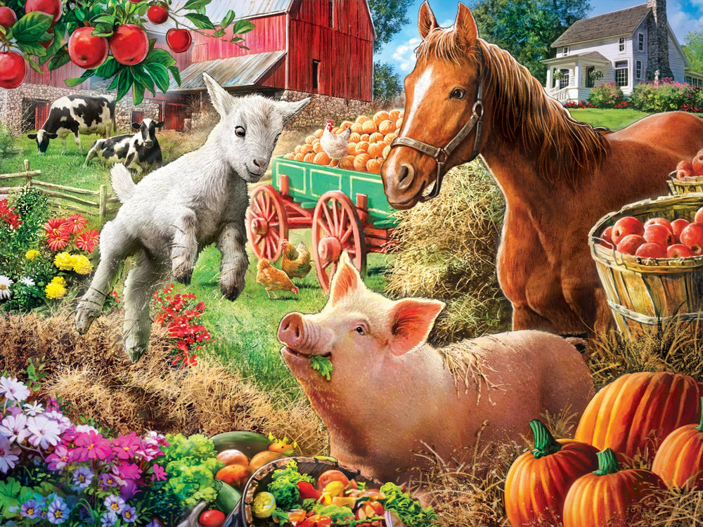 Step into the lively world of the farm with our 300-piece Pumpkin Patch Pals EZGrip puzzle! Perfect for all ages, this vibrant puzzle features a group of playful farmyard friends enjoying a day in the autumn sun. From the mischievous goat prancing through the flowers to the happy pig snacking near a pumpkin-filled harvest, every piece is packed with personality and charm. With large, easy-to-handle pieces, the Pumpkin Patch Pals puzzle is designed to make assembly both fun and relaxing. The colorful details and heartwarming scene will make this puzzle a joy to complete, whether you’re working solo or with family and friends. Perfect for puzzle lovers, farm fans, and anyone who appreciates the magic of the harvest season.