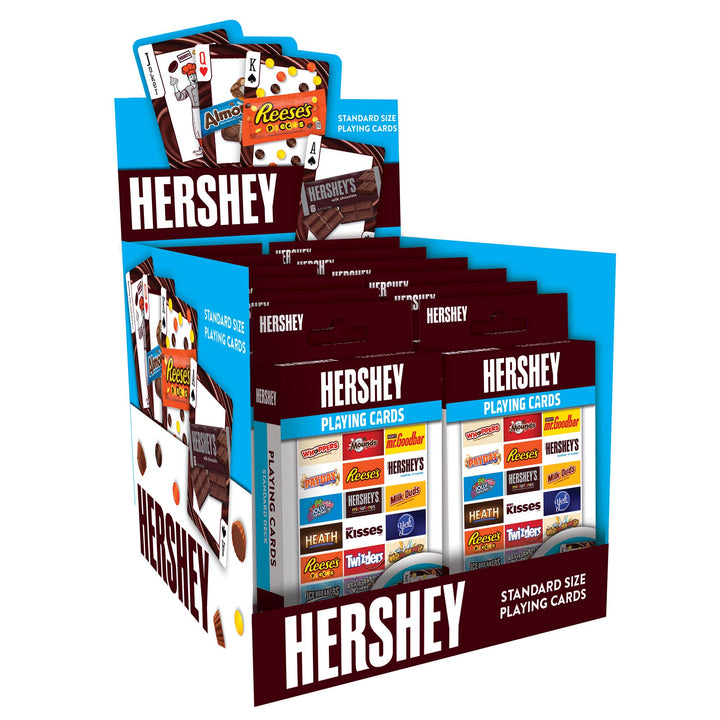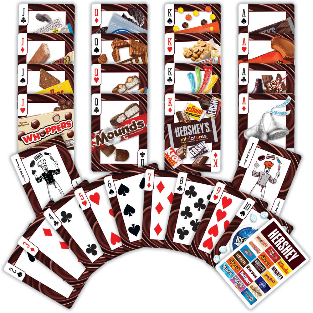 These Hershey playing cards are the perfect deck for any candy fan! Each standard deck contains 52 high quality cardstock cards and 2 jokers. Card-back designs feature the HERSHEY logo. All face cards and jokers have photographs of Hershey's sweetest candy treats. Officially licensed and approved Hershey playing cards