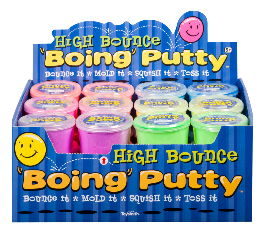Toysmith’s best-selling High Bounce Boing Putty does more than just act like a bouncy ball. This super-stretchy, brightly colored putty toy can be squished, stretched, and even molded like clay into 3D figures. Each putty comes in a reusable plastic 4-ounce container. Choose from neon pink, orange, blue, purple, green, or yellow. This putty is thick enough to act like clay, stretchy enough for tactile stress relief, and bouncy enough to encourage active movement.