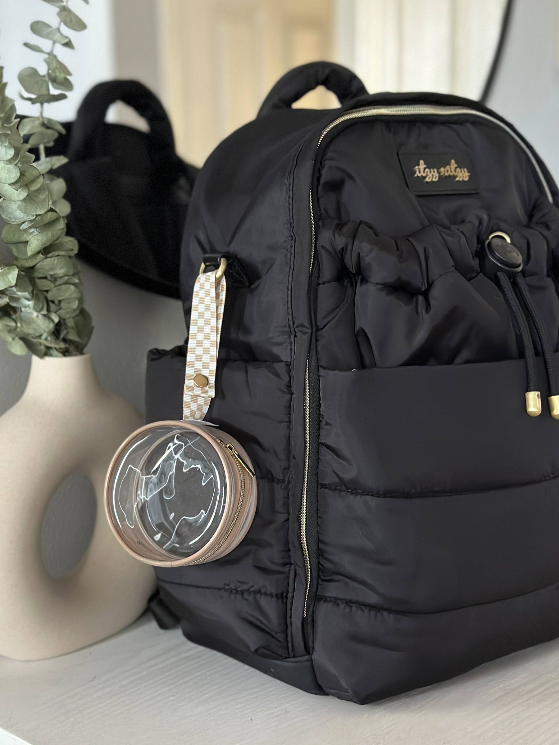 The clear winner in paci storage! The multi-use Itzy Paci Case™ attaches onto your diaper bag, purse, or travel bag to keep essential parenting items in clear view. Just snap the case to your diaper bag and go! Clear material shows off your adorable Itzy Ritzy pacifiers and keeps them clean inside your bag. - Keeps pacifiers clean and close. - Easily attaches to diaper bag or stroller. - Clear design for easy organization. - BPA free, phthalate free.