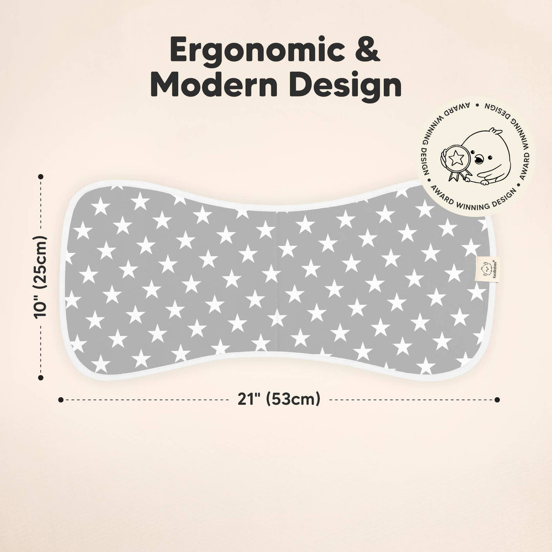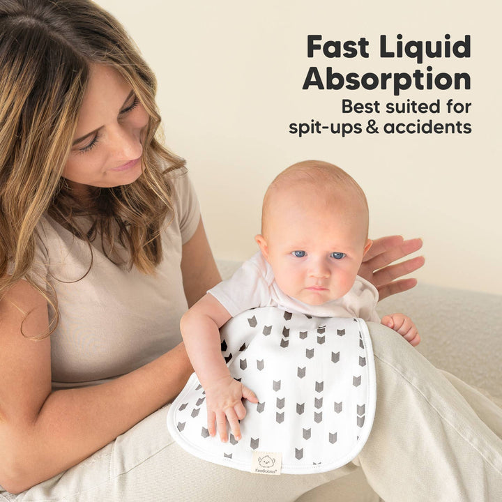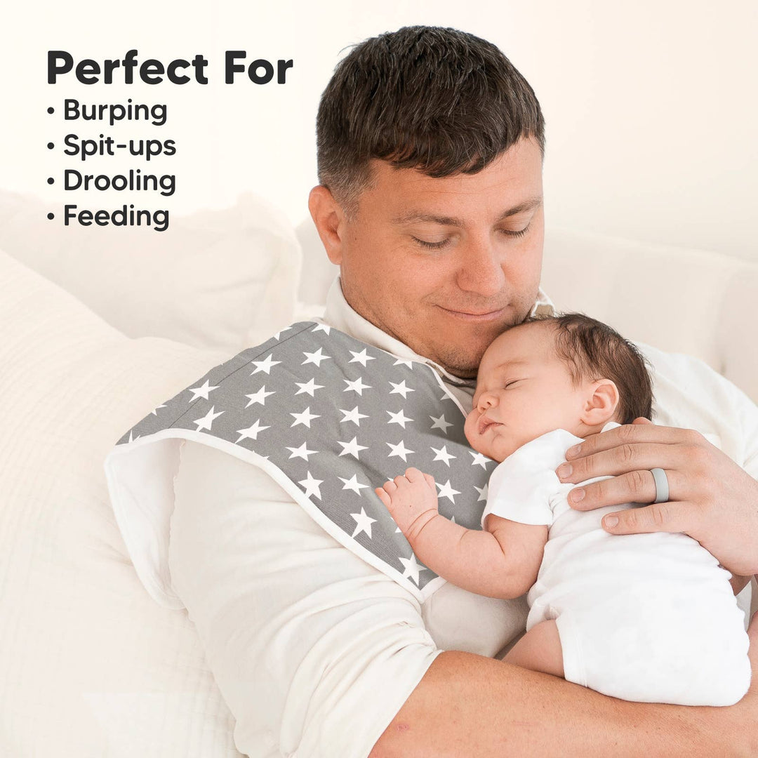 Our KeaBabies Urban Organic Burp Cloths are the perfect burping cloths for babies. Filled with quality fleece for optimum absorption, the highly soft and absorbent burp cloths keeps parents fresh and dry from spit ups, drool or puke. Sized at 21" x 10", these large burp cloths are wide enough to cover your shoulders and the unique figure-8 design prevents these spit up rags from slipping. With over 10 designs available, our baby burp cloths comes in unisex gender neutral designs, baby boy burp cloths designs or baby girl burp cloths designs. Made with 100% organic cotton on both sides of the burp cloth, it is safe for your newborn baby's sensitive skin. These burp rags are machine washable and are sold in pack of 5 in a sustainable kraft gift box.
