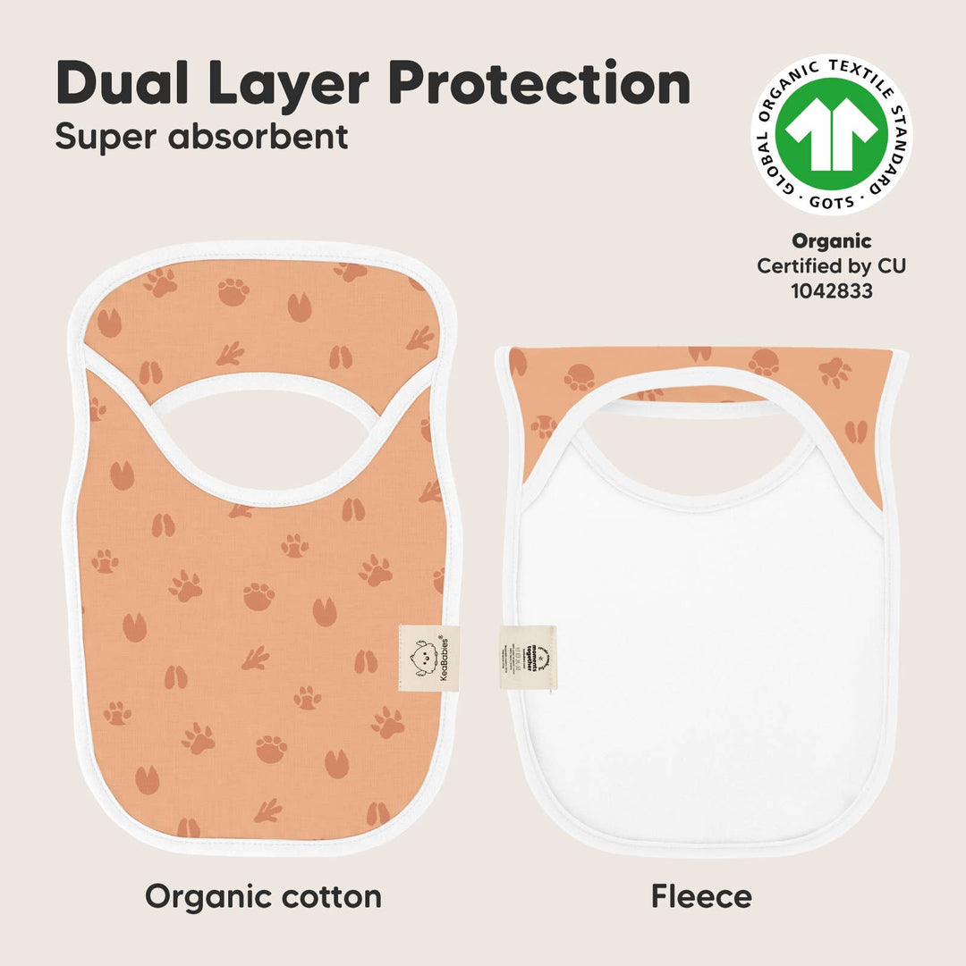 Made with Organic Cotton (GOTS-Certified by CU 1042833) and backed with water resistant fleece for added absorption, the Hallo Baby Bibs for Girls and Boys keep your baby's clothes fresh all day long.