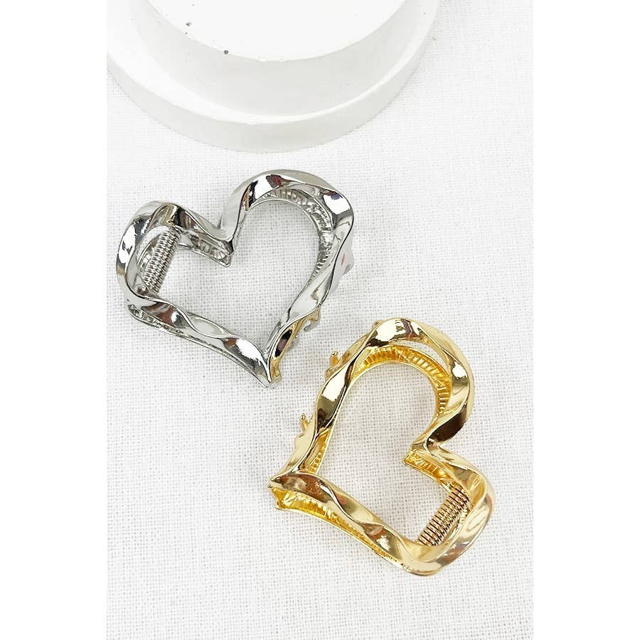 Metal Heart Shape Hair Claw Clips -Metal Heart Hair Claw Clips, Non-Slip Catch Hairpins Star Styling Hair Accessories for Women Girls for Thick Thin Hair (Gold & Silver) -Size: 2.5 Inch x 2 Inch