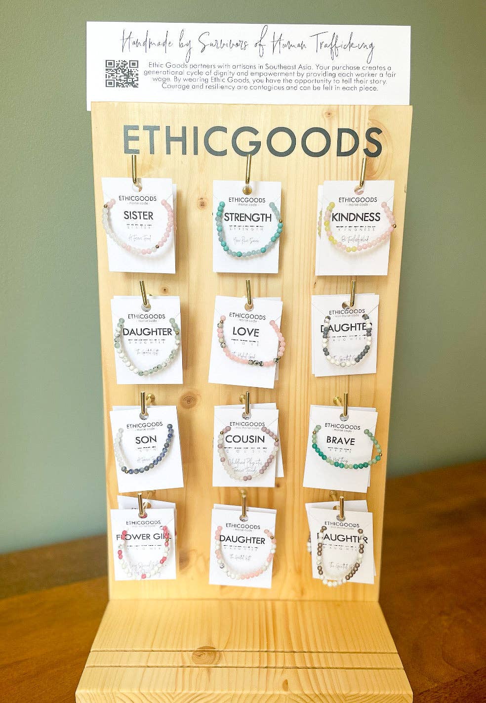 Your purchase helps to provide economic empowerment for women who are survivors of human trafficking and exploitation. Each piece is handcrafted by the woman it helps to employ. Through wearing Ethic Goods, you become a meaningful part of her story, and give freedom to women around the world.