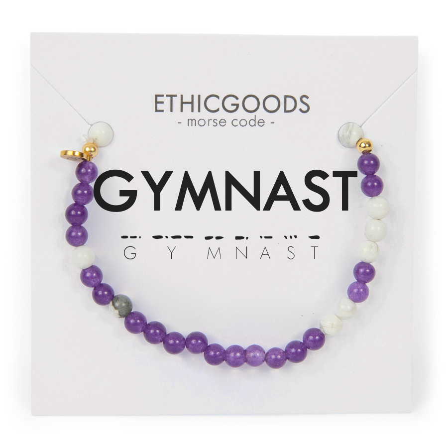 Show off your dedication to the sport with this playful and unique accessory, perfect for any gymnast. Code your passion into your style with this fun and stylish bracelet.