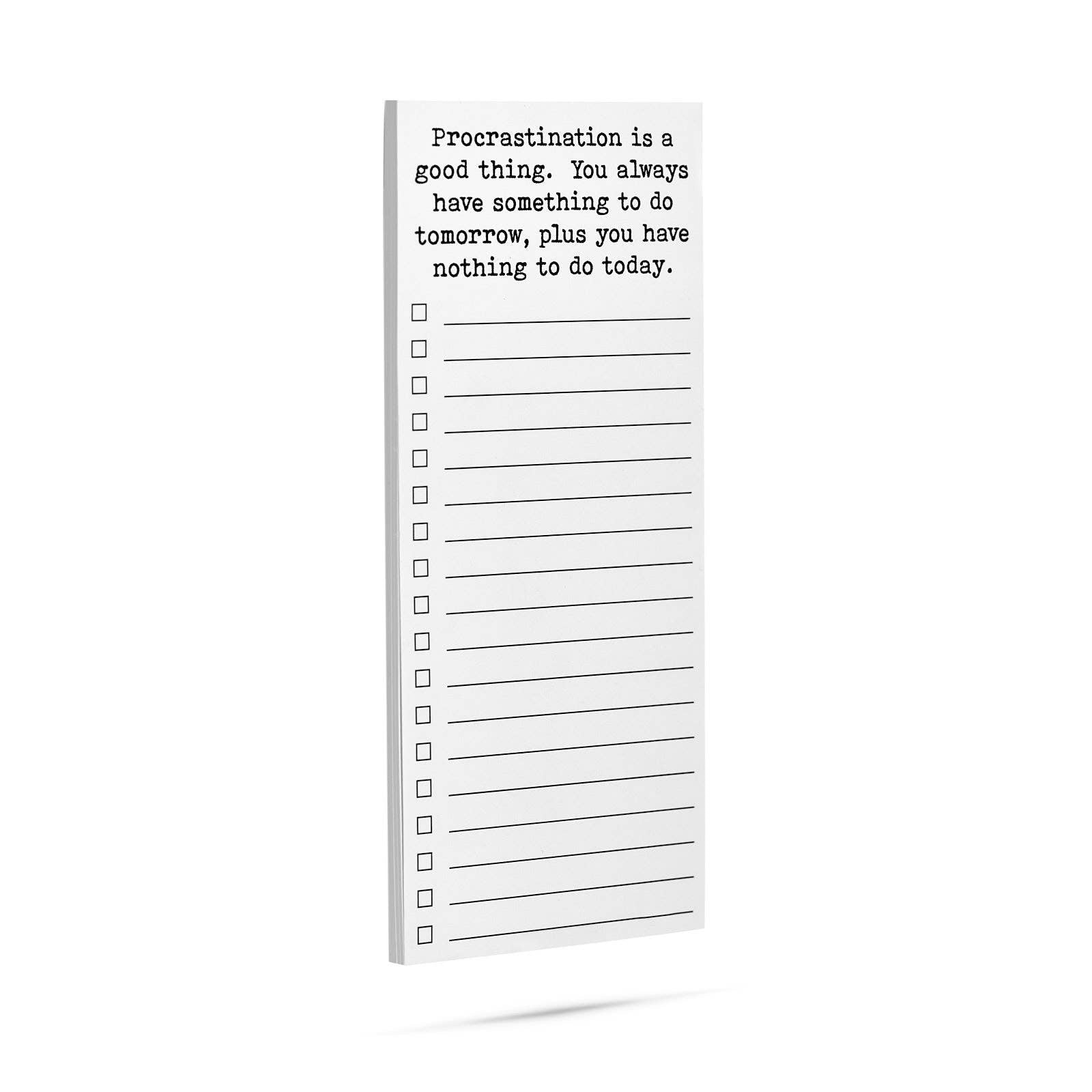 KEYWORDS: Procrastination is a good thing you always have something to do tommrrrow plus you have nothing to do today, Funny products, funny printed notepads with sayings on them, funny paper goods, sarcastic printed products, list pads with sayings, notepads with funny sayings, high quality paper printed notepads, ellembee gift, best selling products on Faire, female made products, funny notepads wholesale, funny sarcastic notepads, funny yet practical notepads, sassy to do list note pads, sassy to do list pads, snarky printed notepads,