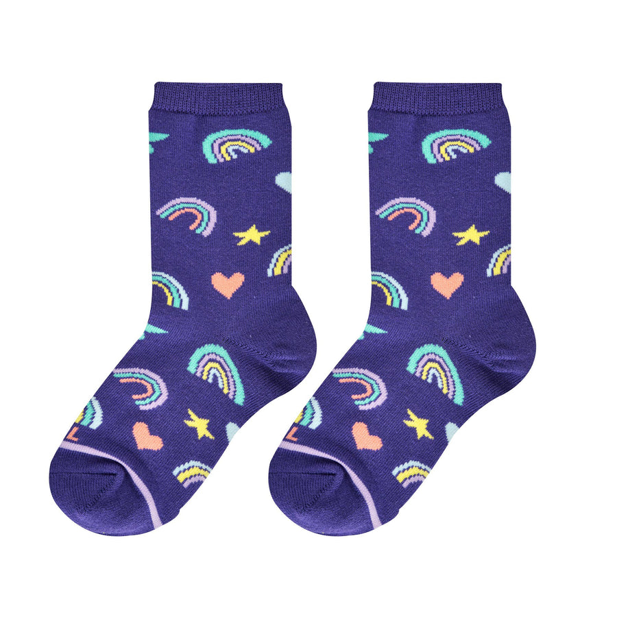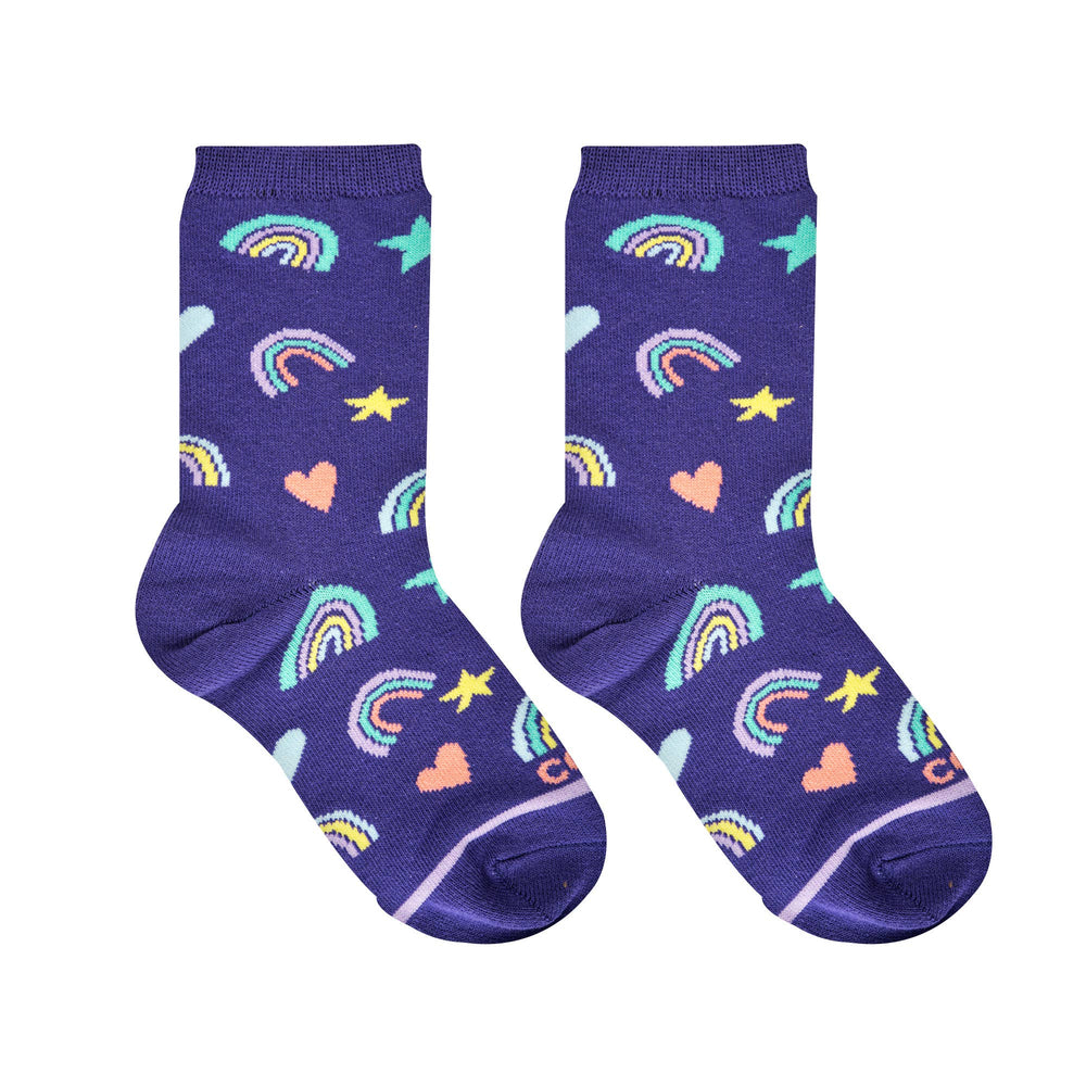 Introduce your little ones to the joy of vibrant footwear with our Rainbows - Kids 4-7 Crew socks by Cool Socks. These socks are designed to help children express their unique personality, breaking away from conformity. Encourage them to stand out and be ODD with our colorful and fun designs. Perfect for ages 4-7, these socks provide both comfort and style. Remember, normal is overrated. Let your child's individuality shine with Cool Socks.