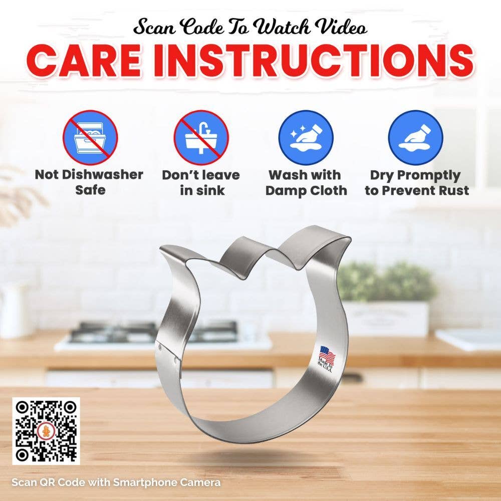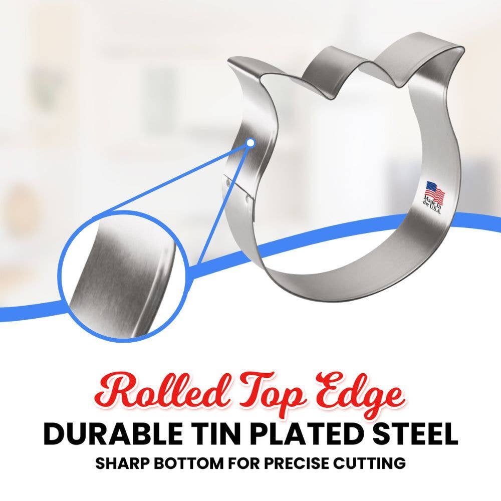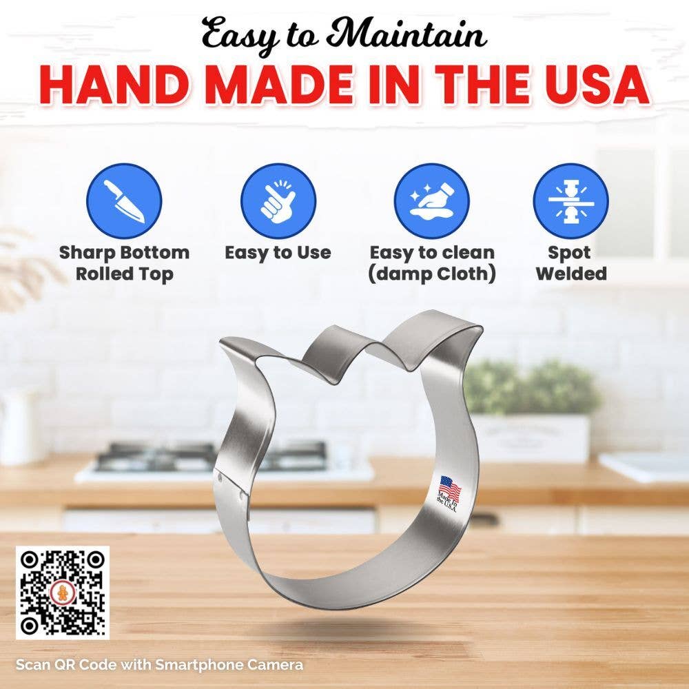 Rose tulip flower cookie cutter b1560, made of sturdy tin, size: 3.25 in tall, 3 in wide, depth 7/8 in. Made in the USA.