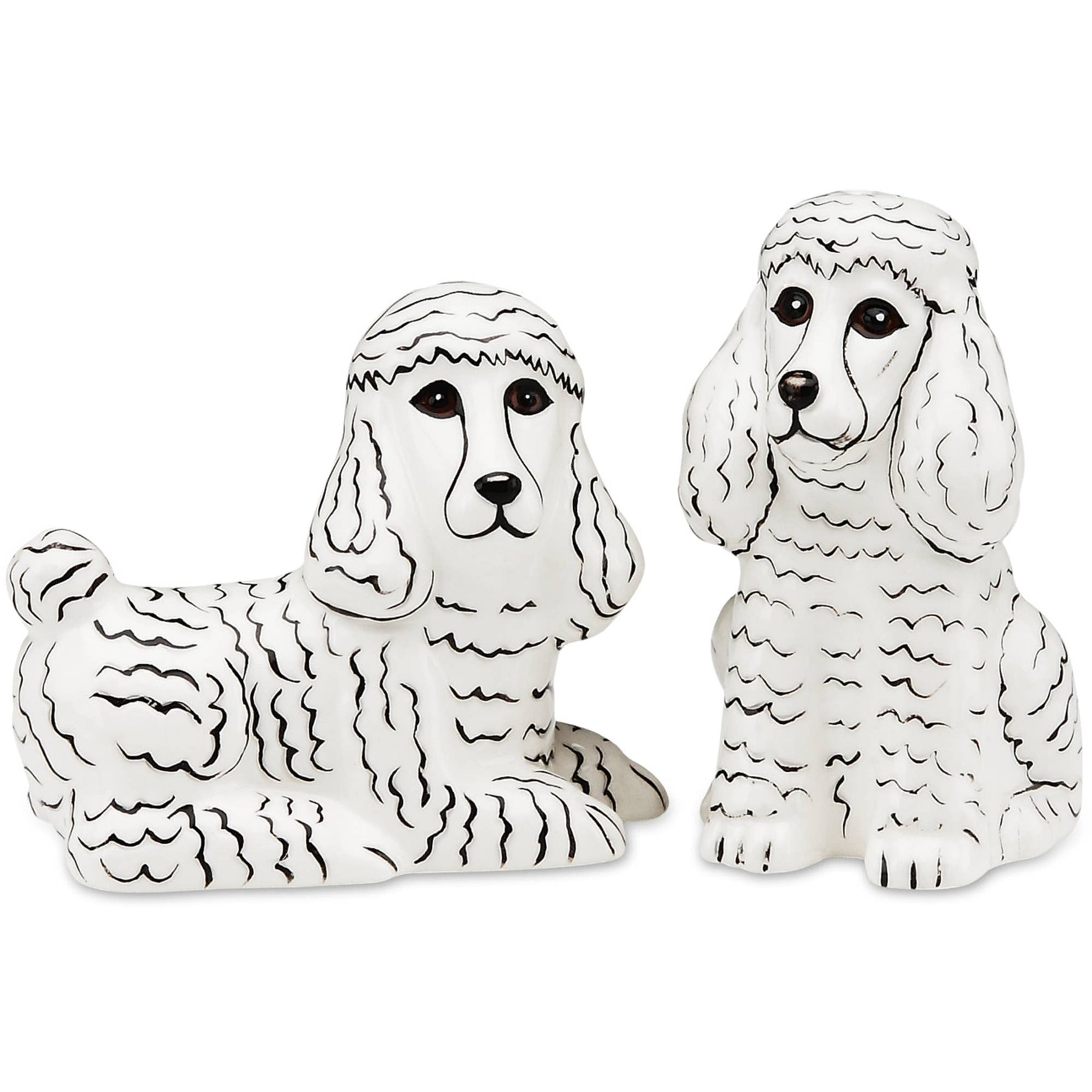 Salt & Pepper shaker set, packaged securely in a printed box, is made from ceramic. Features a White Poodle design recreated from a photograph. Dishwasher safe, although washing by hand is recommended to best preserve decals. Microwave safe. Great for gifting to a friend who loves dogs.
